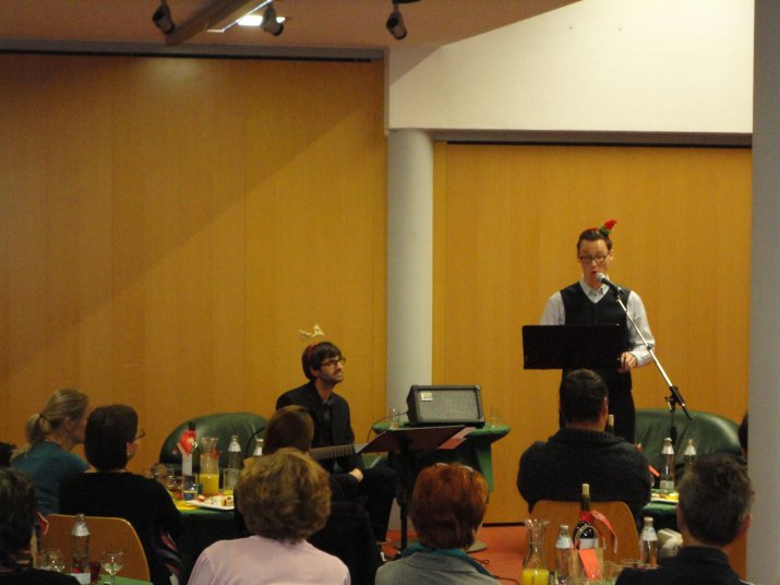 Unterschiedlichste literarische Texte wurden mit weihnachtlicher Begeisterung vorgetragen, die eine große Vorfreude auf das Fest der Feste weckt. Feierliche Dekorationen, Weihnachtsplätzchen und Getränke dienten der genießerischen Untermalung einer rundum gelungenen Weihnachtsveranstaltung.