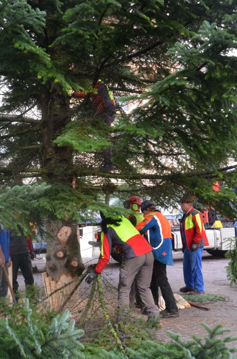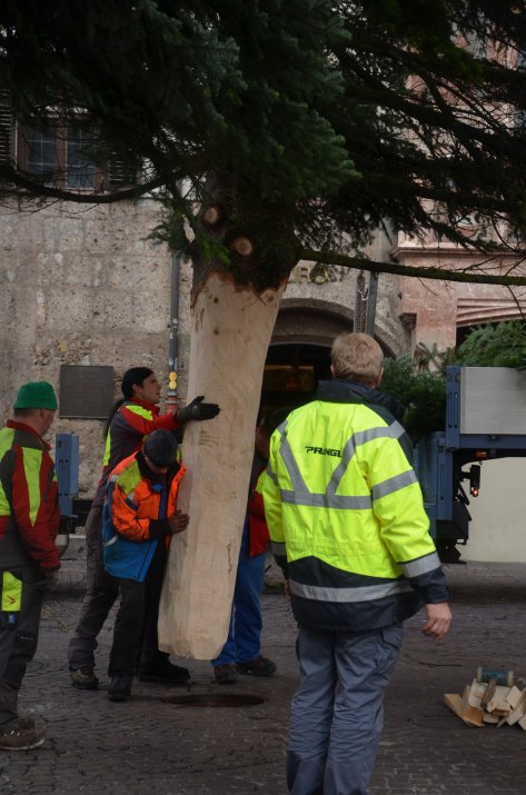Das Amt für Land- und Forstwirtschaft koordiniert, wie jedes Jahr, alle notwendigen Maßnahmen von der Baumsuche bis hin zur Aufstellung und wird dabei unentgeltlich von den Firmen Prangl und Schneider logistisch unterstützt. Um Windböen bzw. Föhnstürmen Stand zu halten, wird der Baum nach allen Seiten hin gesichert.