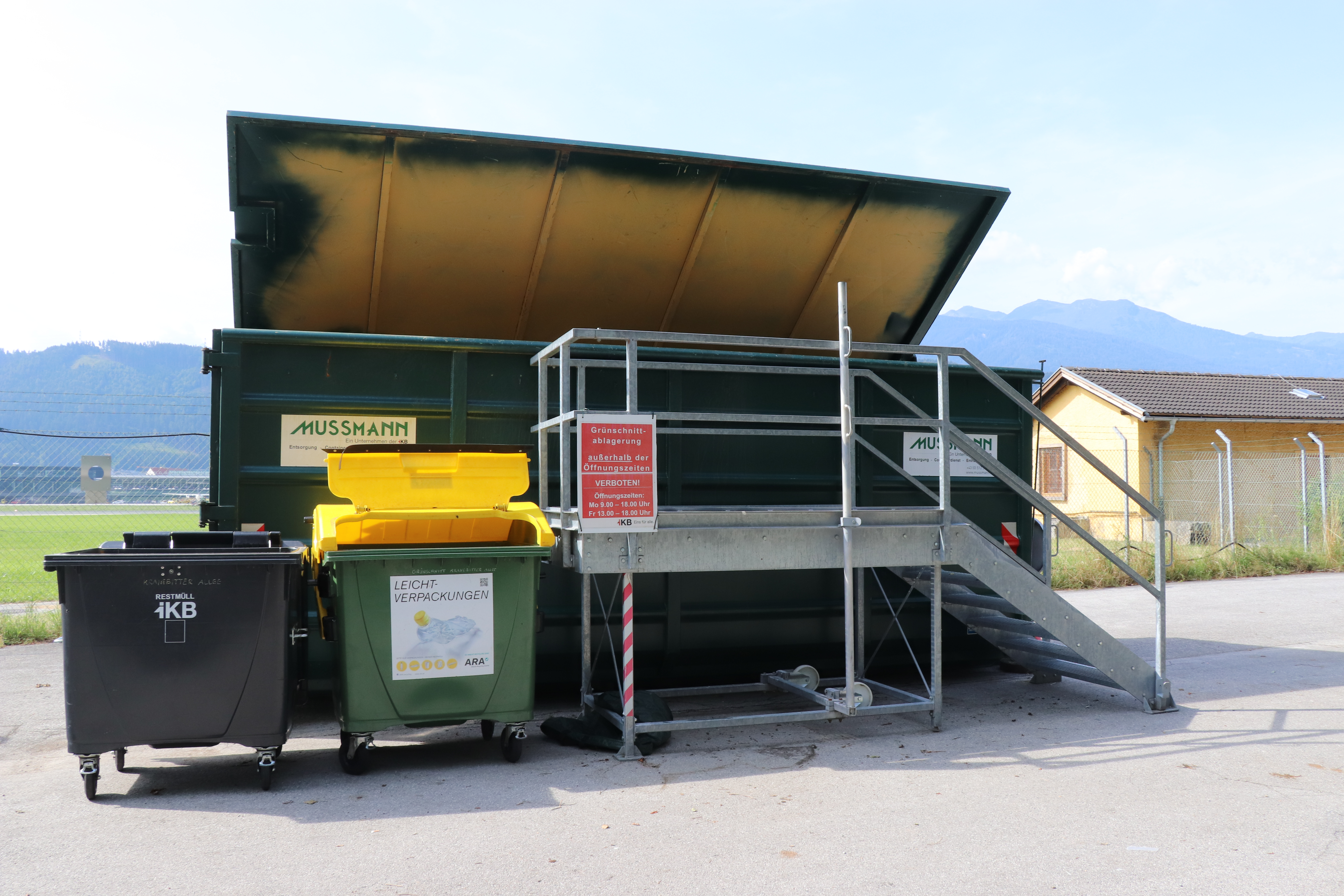 In der städtischen Kompostieranlage in der Roßau (am Ende des Archenwegs nach dem Baggersee) können Grünabfälle wie Baum- und Strauchschnitt, Gras, Laub oder Stroh, gegen Gebühr abgegeben werden. Bis zu einer jährlichen Menge von 1.000 Kilogramm pro Liegenschaft werden Gartenabfälle aus Privatgärten von Innsbrucker GemeindebürgerInnen kostenlos angenommen. Unbegrenzt und gebührenfrei nimmt die Anlage laubfreies Astwerk entgegen. Der in der Kompostierung erzeugte Qualitätskompost der Klasse A+ und ein KompostHumus-Gemisch können vor Ort erworben werden. Grünschnitt in Kleinmengen (Behältnisse, die von einer Person getragen werden können) nimmt die Sammelstelle Kranebitten (östlich der Liegenschaft Kranebitter Allee 97) kostenlos von 11. März bis 28. November (Mo. und Fr., 13.00-17.00 Uhr, Sa., 9.00-13.00 Uhr) an.