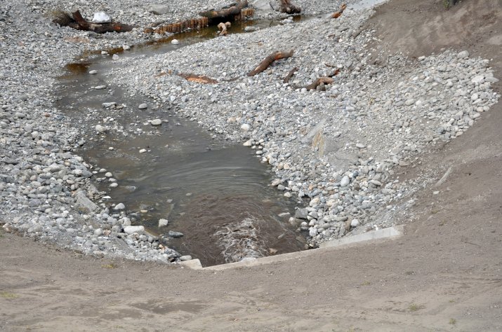 Im Normalbetrieb des Nebenarmes wird dieser über ein Einlaufbauwerk und die Dotationsleitung mit einem kontinuierlichen Wasserdurchfluss von etwa 0,5 m³/Sekunde versorgt. Für Spülzwecke kann über ein weiteres Einlaufbauwerk und eine gesonderte Leitung in den dafür vorgesehenen Perioden eine Wassermenge von rund 5 m³/Sekunde eingezogen werden. Das ermöglicht die selbsttätige Räumung von abgelagerten Feinsedimenten.