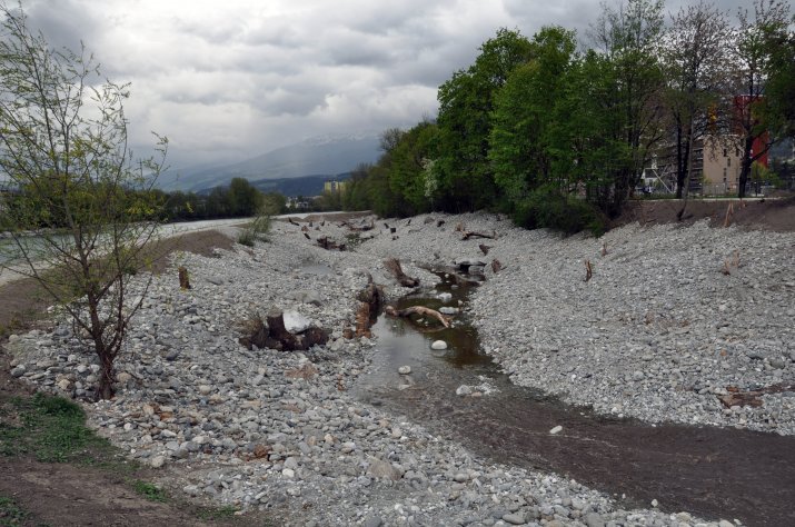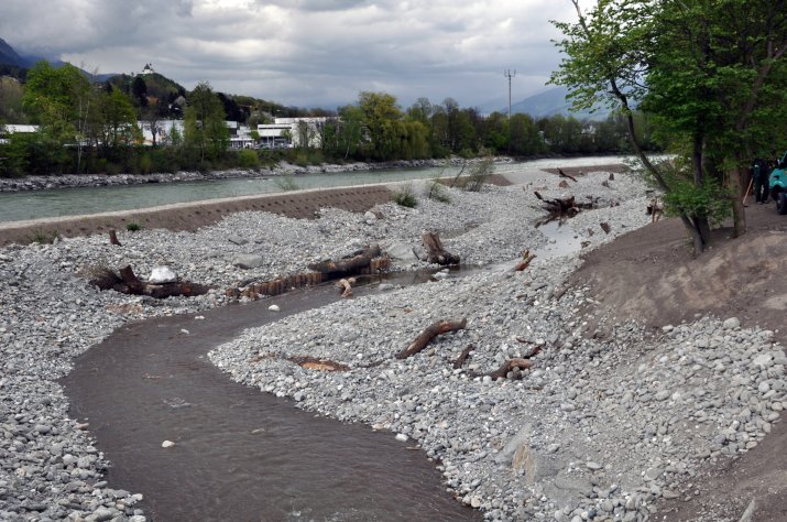 Zur Sohlbeschuppung des Altarmes wurde Material der vorhandenen Schotterbank verwendet. Die bestehende Schotterbank – ein beliebtes Naherholungsgebiet der InnsbruckerInnen – wurde zwar in der Höhe etwas abgesenkt, bleibt aber in ihrer jetzigen Größe und Nutzbarkeit erhalten.