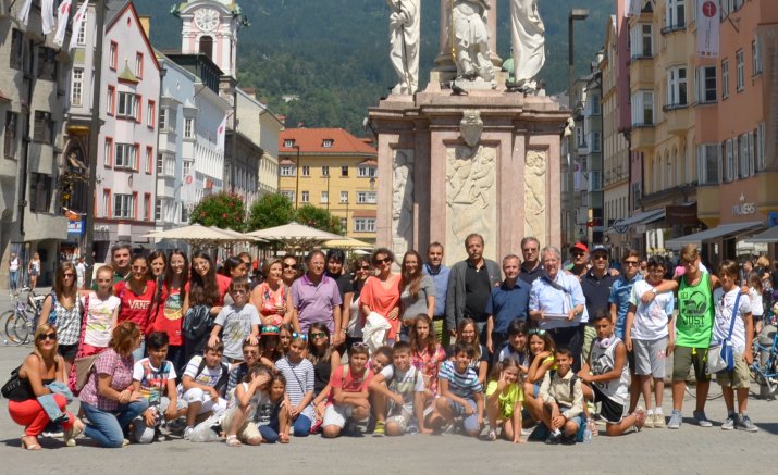 Vor der Annasäule nahm Stadtrat Mag. Gerhard Fritz am 18. Juli 25 Schülerinnen und Schüler mit ihren Eltern aus Kalabrien in Empfang. Im Zuge des Projektes „Willkommen und Welcome“ ist die Klasse nach Innsbruck gereist, um ihren Heimatort Curo bekannt zu machen. Mit einem Video und kalabresischen Produkten werben sie für Ihr Heimatland.