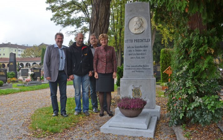 Am Westfriedhof befindet sich seit mehr als 150 Jahren das Grabmal des oberösterreichischen Dichters Johann Otto Prechtler. Nun wurde Steinmetz Hubert Schmiedinger gemeinsam von der Stadt Innsbruck und der Gemeinde Grieskirchen beauftragt, das Denkmal zu sanieren.