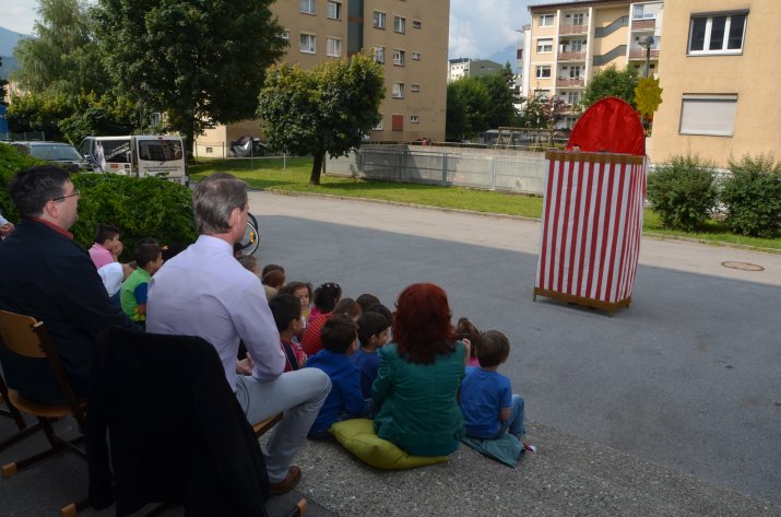Nachdem in den vergangenen Jahren in Innsbrucks Kindergärten bereits das Stück „Kasperl und der Müllzauberer“ vorgestellt wurde, dreht sich im neuen Stück des Handpuppenspielers Andreas Ulbrich alles um das Thema Mobilität. Seine Vorstellung im Kindergarten Burghard-Breitner-Straße begeisterte nicht nur die Kindergartenkinder, sondern auch Vizebürgermeisterin Mag.a Sonja Pitscheider, Vizebürgermeister Christoph Kaufmann, Amtsleiterin Mag.a Brigitte Berchtold (Kinder- und Jugendbetreuung) und DI (FH) Stefan Siegele (Referent Umwelttechnik und Abfallwirtschaft). Im Anschluss an die Aufführung radelte der Puppenspieler gemeinsam mit den städtischen UnterstützerInnen zur nächsten Vorstellung in den Kindergarten Reichenau-Süd.