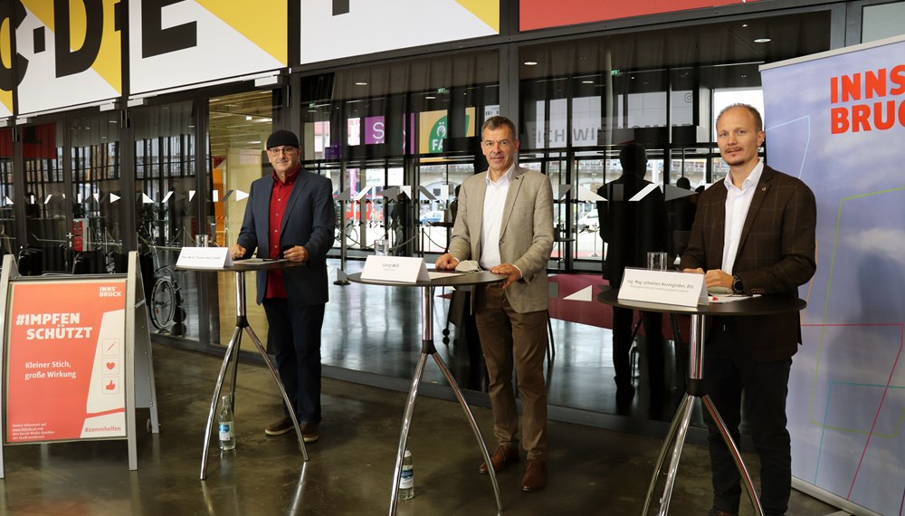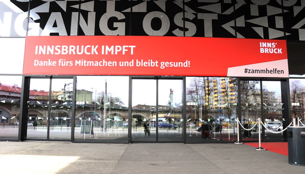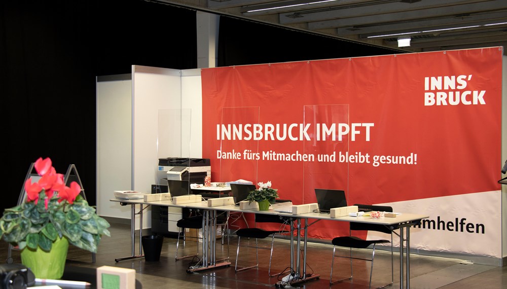 - Impfzentrum Innsbruck (mit und ohne Anmeldung): Messehalle in der Halle D, 1. Stock, Ing.-Etzel-Straße (Mittwoch bis Freitag von 9 bis 18 Uhr und Samstag von 9 bis 13 Uhr)
