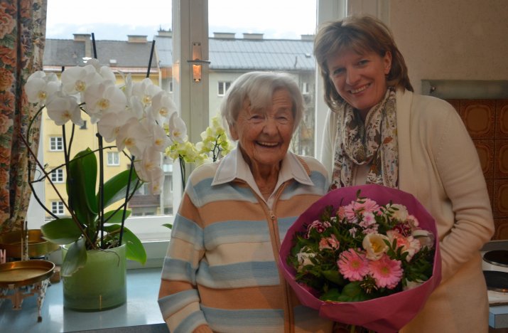 Es sind fast ausschließlich Lachfalten die Emma Lorenzi mit ihren 101 Jahren im Gesicht trägt. Die Seniorin begeistert mit purer Lebensfreude und so strahlte sie auch über beide Ohren beim Besuch von Bürgermeisterin Mag.a Christine Oppitz-Plörer. Das Stadtoberhaupt gratulierte mit einem Blumenstraß in hellen Pastelltönen zum 101. Geburtstag und zeigte sich selbst sehr erfreut über den guten Gesundheitszustand der Seniorin: „Sie hatten doch erst vor kurzem noch eine Lungenentzündung und sind schon wieder so gut unterwegs“, staunte die Bürgermeisterin über die agile Jubilarin, die mit einem Lachen entgegnete: „Jaja, Unkraut verdirbt nicht!“