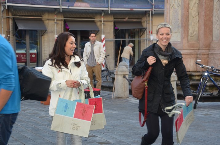 Anlässlich des Equal Pay Days fand auch heuer wieder eine Aktion in der Maria-Theresien-Straße statt: Frauenreferentin Vizebürgermeisterin Mag.a Sonja Pitscheider und die Gemeinderätinnen Marcela Duftner, Kathrin Heis, Dr. Renate Krammer-Stark, Elfriede Moser, Sophia Reisecker und Mag.a Uschi Schwarzl verteilten gemeinsam mit Uschi Klee (Referentin Frauen, Familien und Senioren) sowie den städtischen MitarbeiterInnen Slavica Rajic, Daniel Burgstaller und Ivana Andric Taschen mit dem Aufdruck „Wir machen halbe/halbe – Zeit für mich, uns, andere(s)“ an die PassantInnen, um darauf aufmerksam zu machen, dass es auch anders geht.