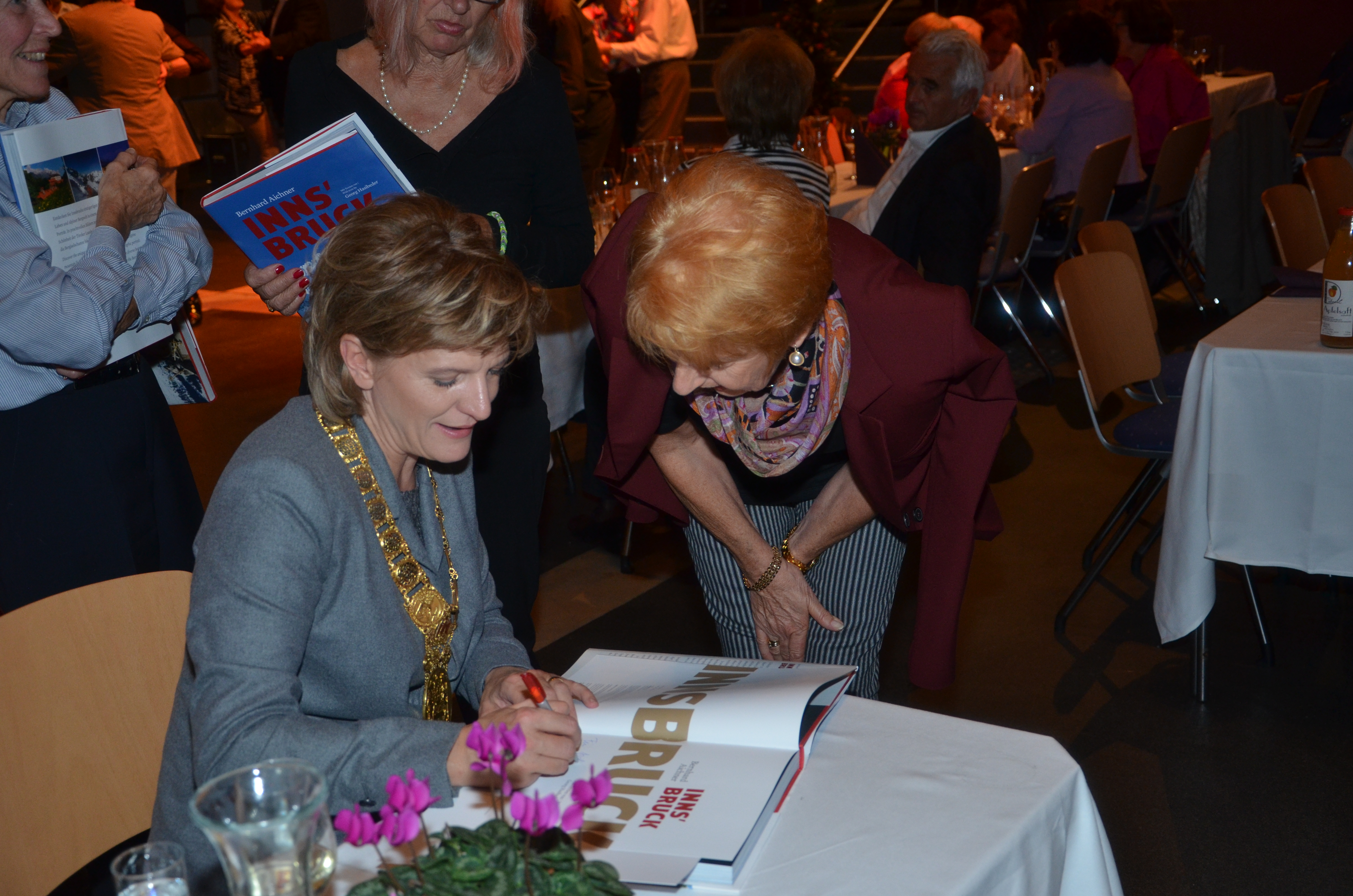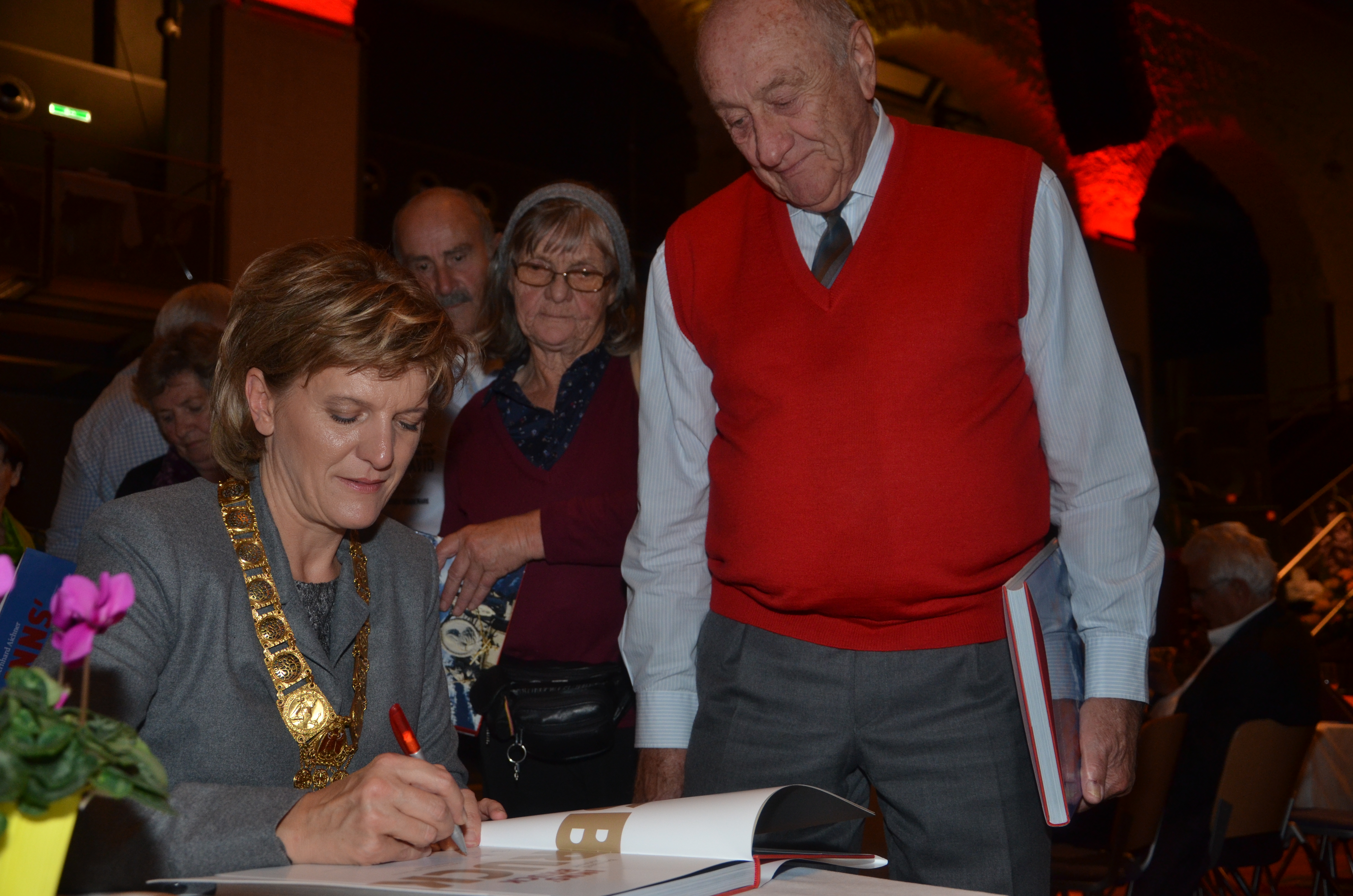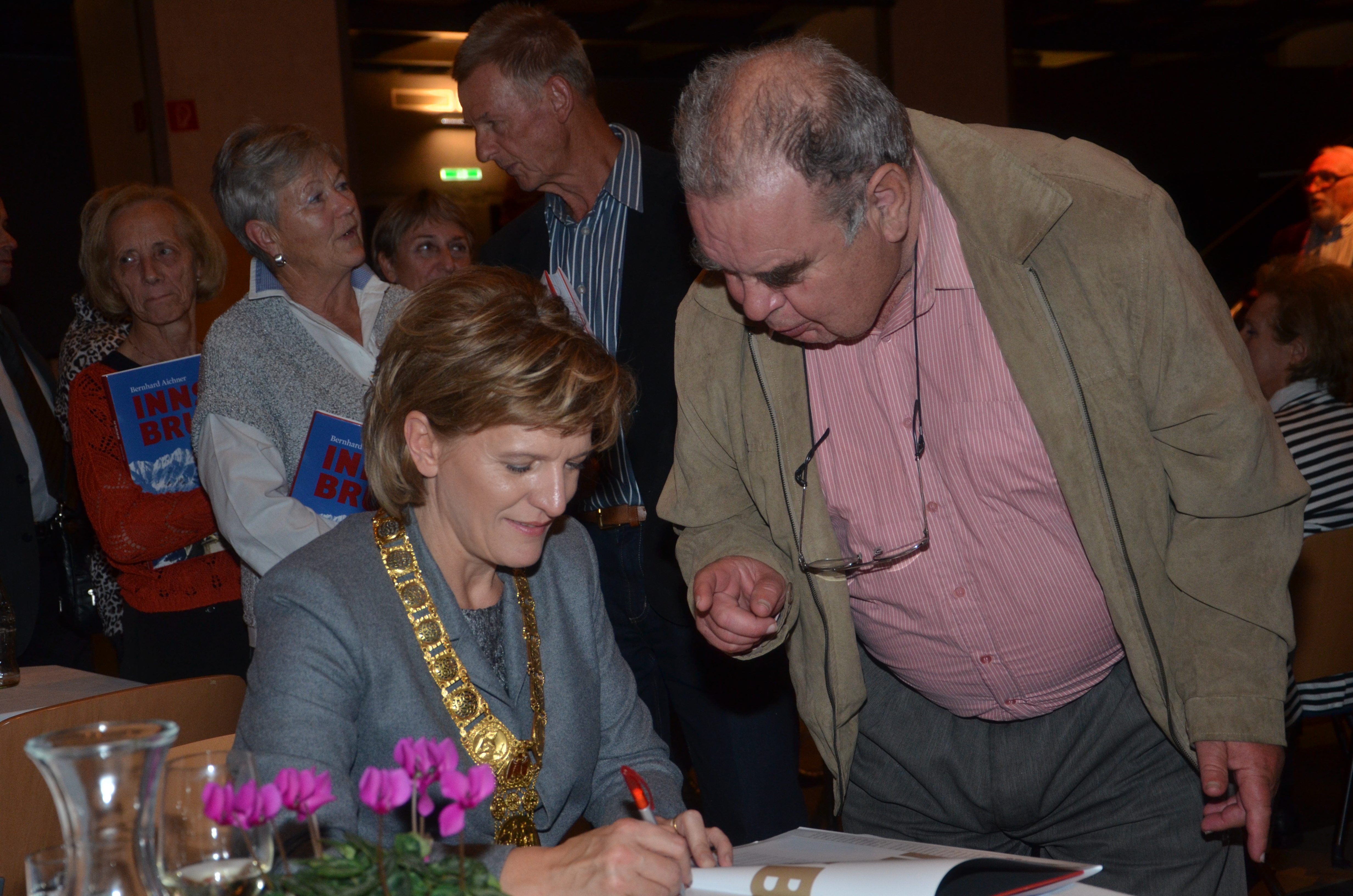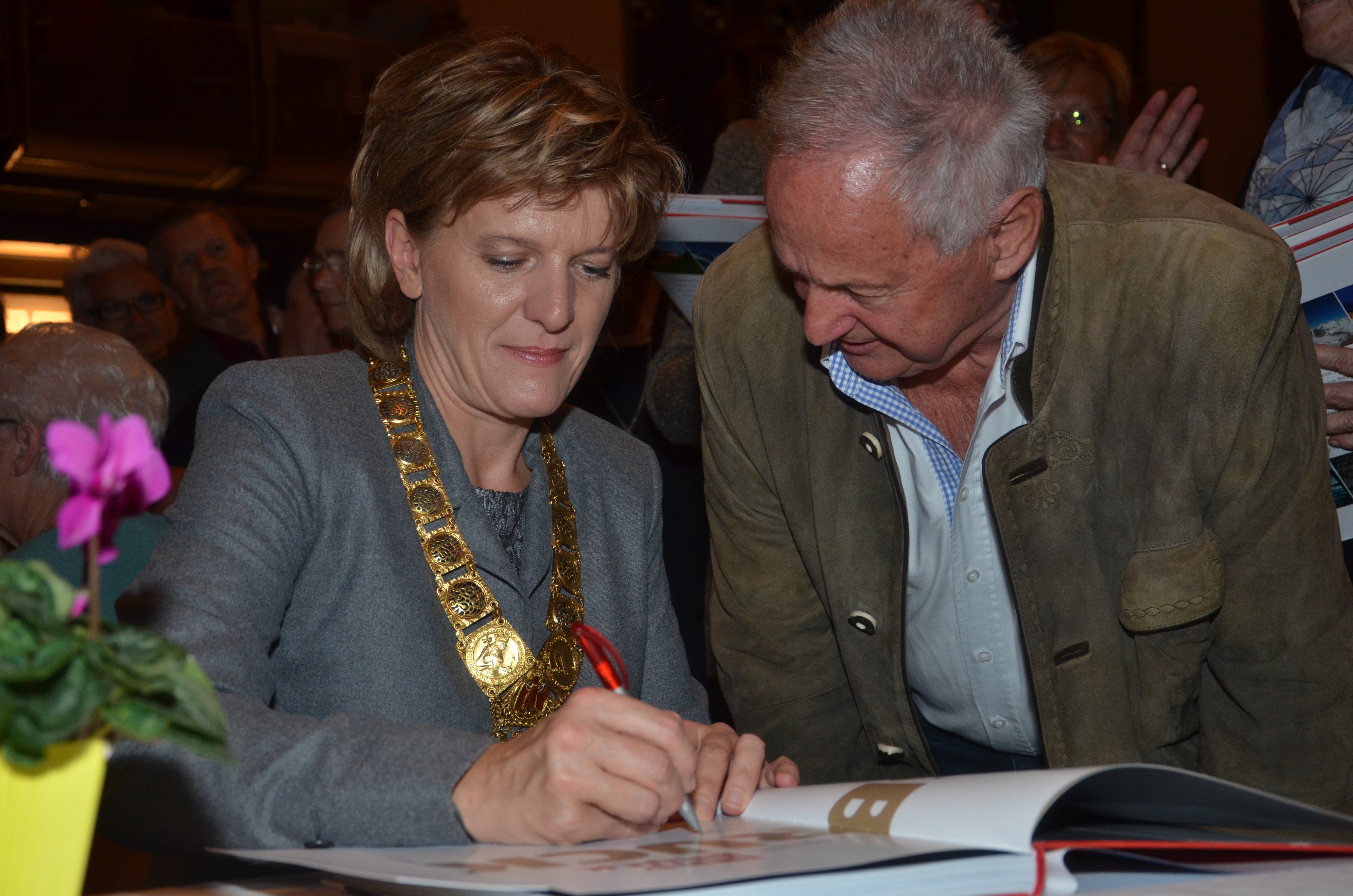 Viele der anwesenden "Geburtstagskinder" holten sich noch eine Unterschrift von Bürgermeisterin Christine Oppitz-Plörer, die gerne jeden Singier-Wunsch erfüllte.