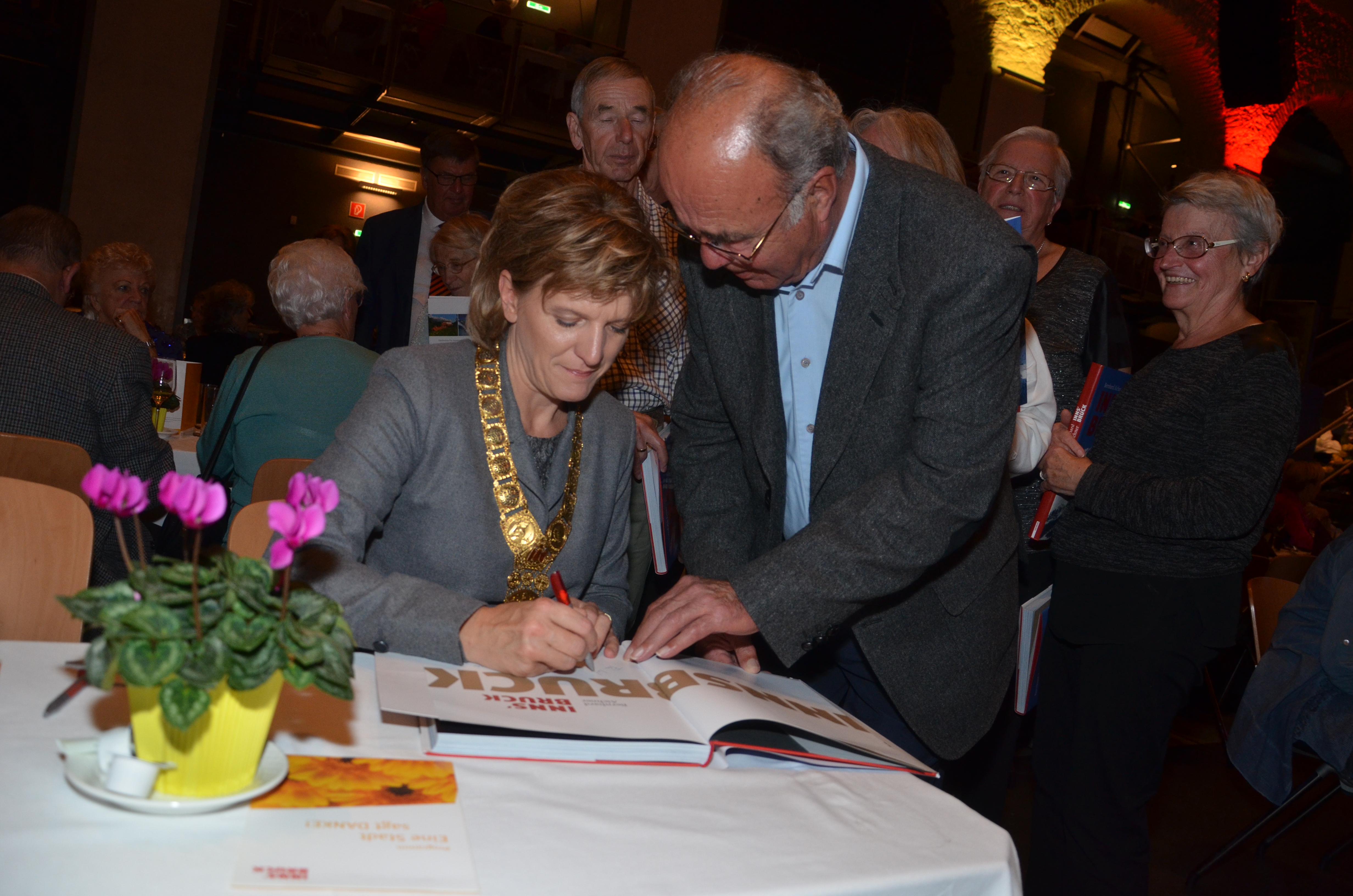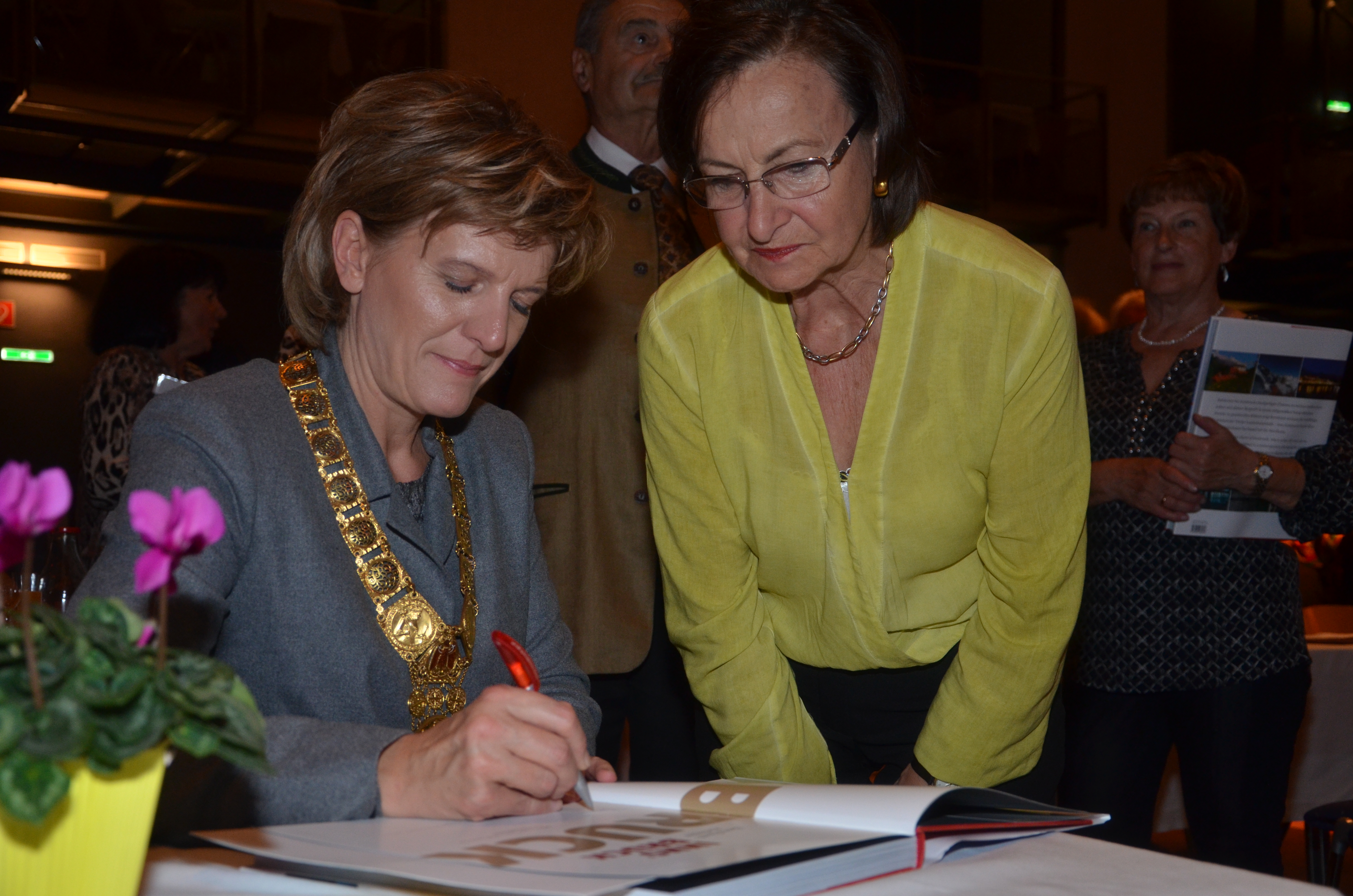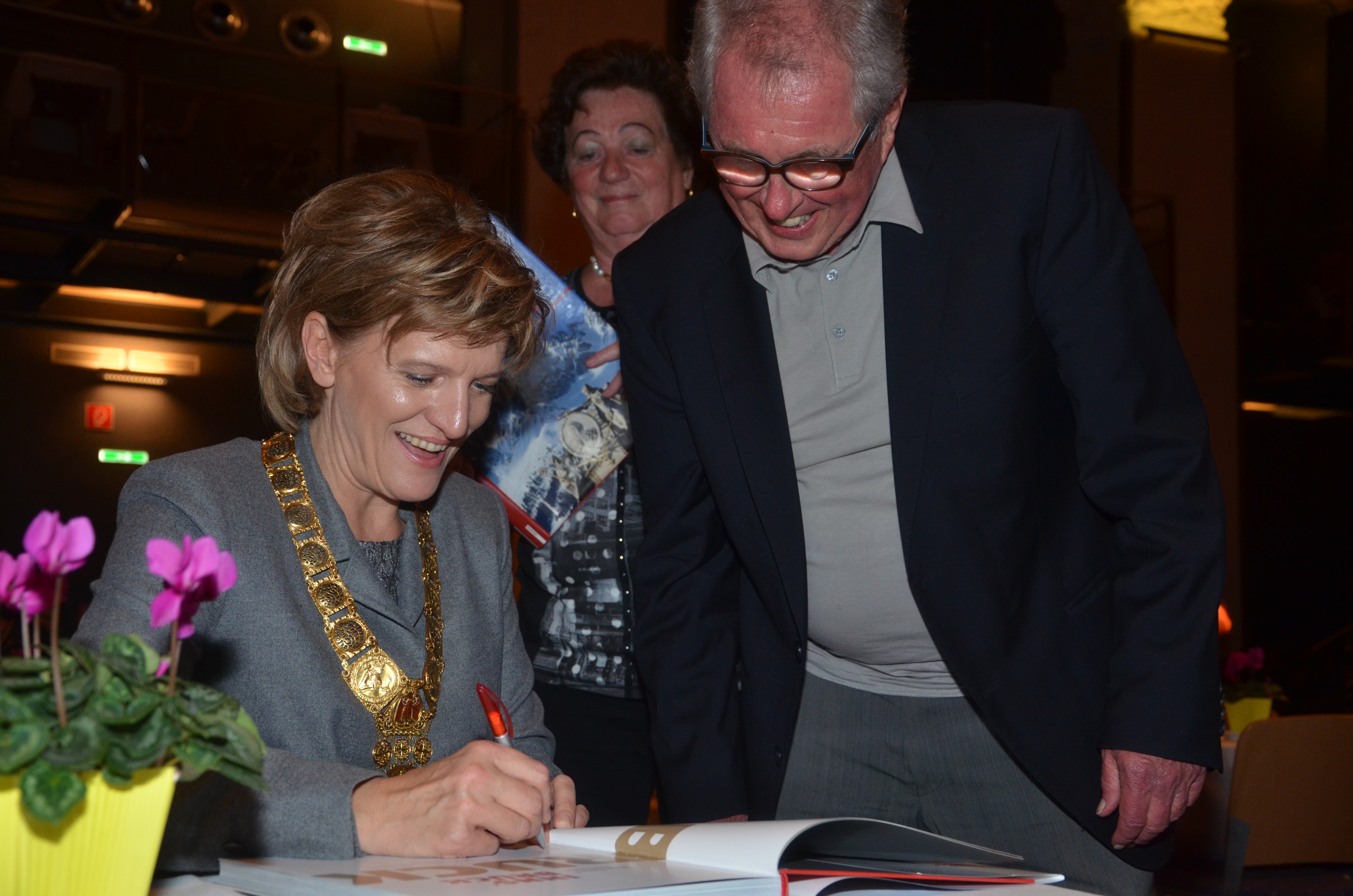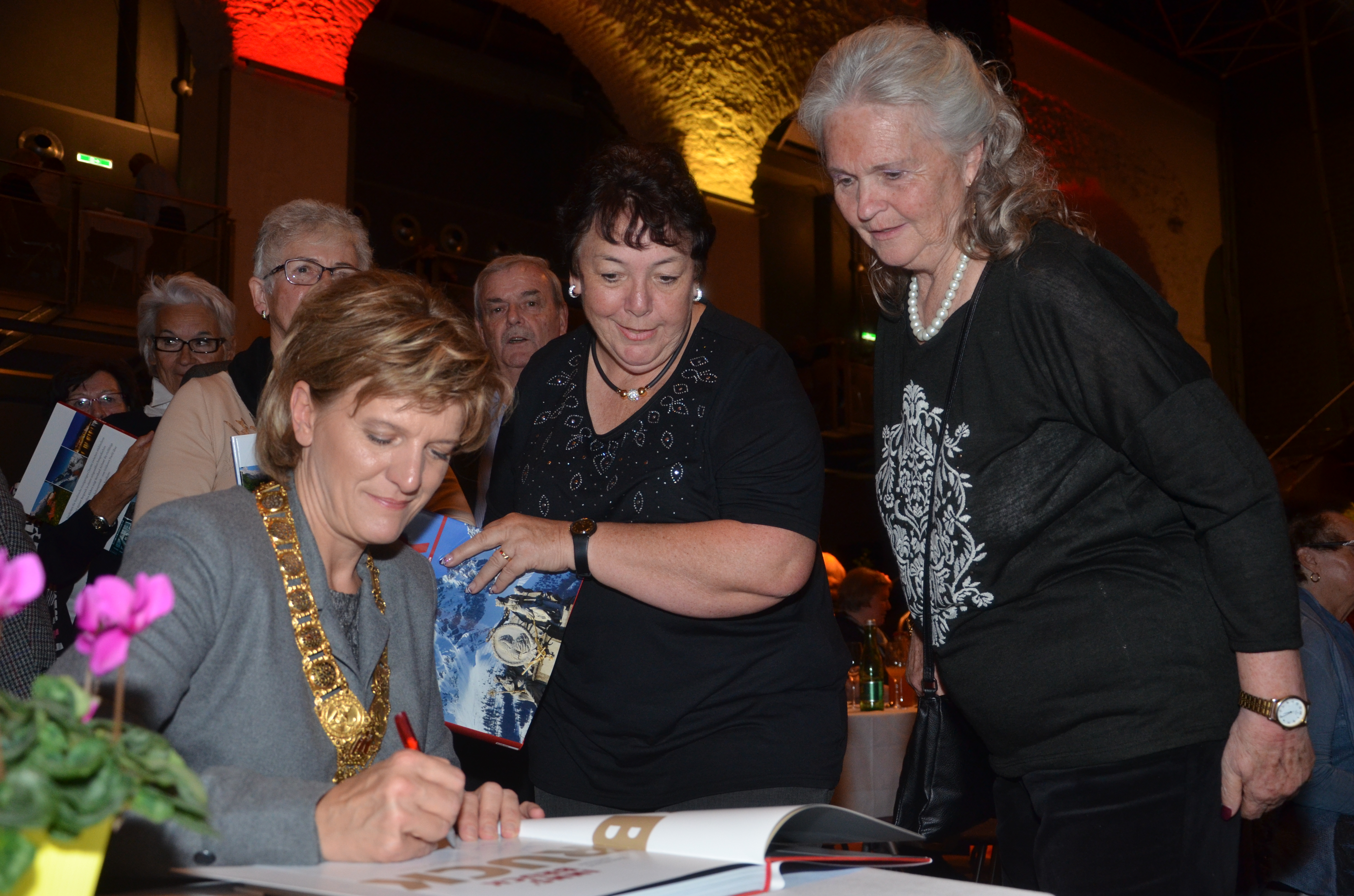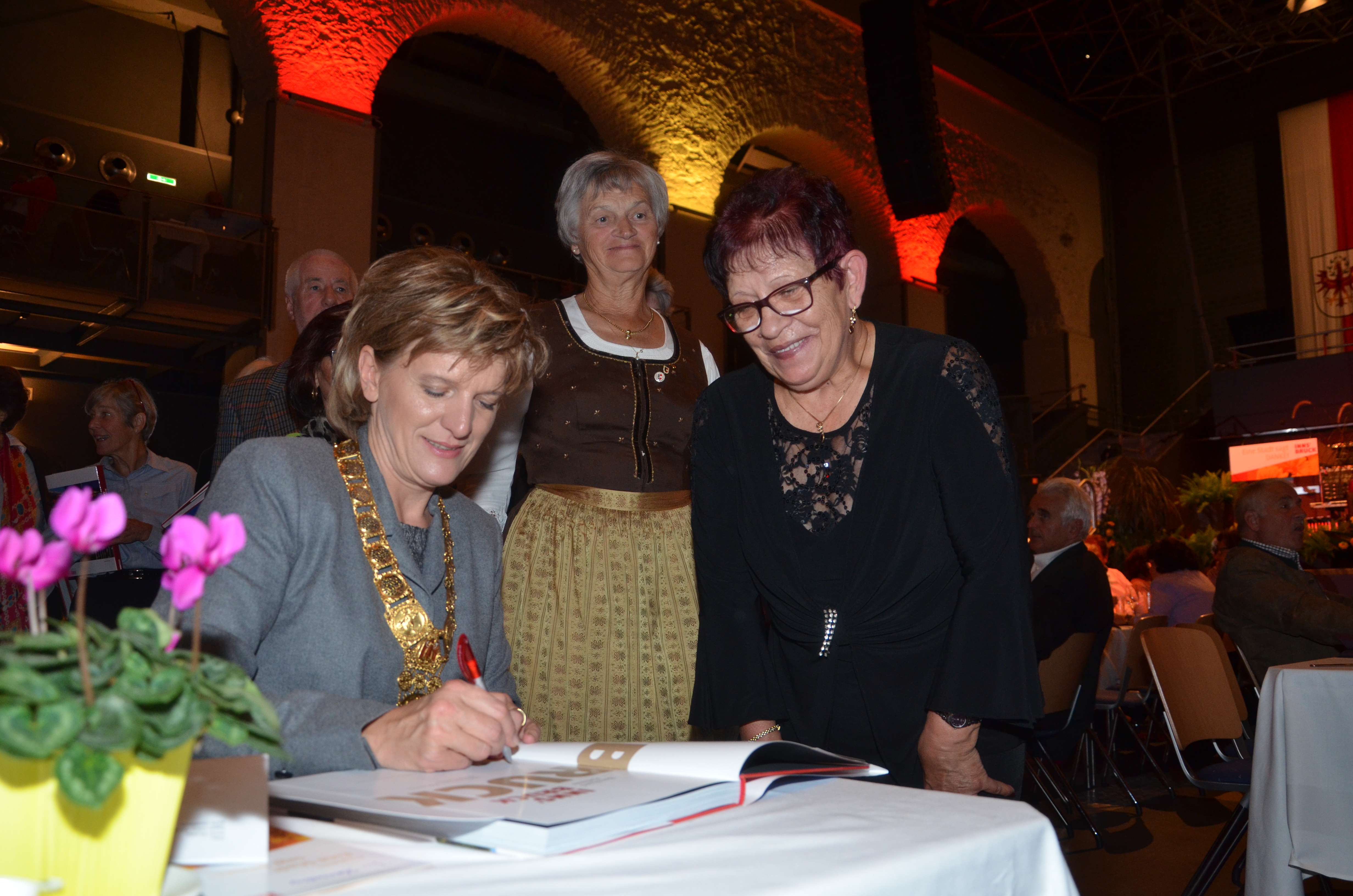 Viele der anwesenden "Geburtstagskinder" holten sich noch eine Unterschrift von Bürgermeisterin Christine Oppitz-Plörer, die gerne jeden Singier-Wunsch erfüllte.