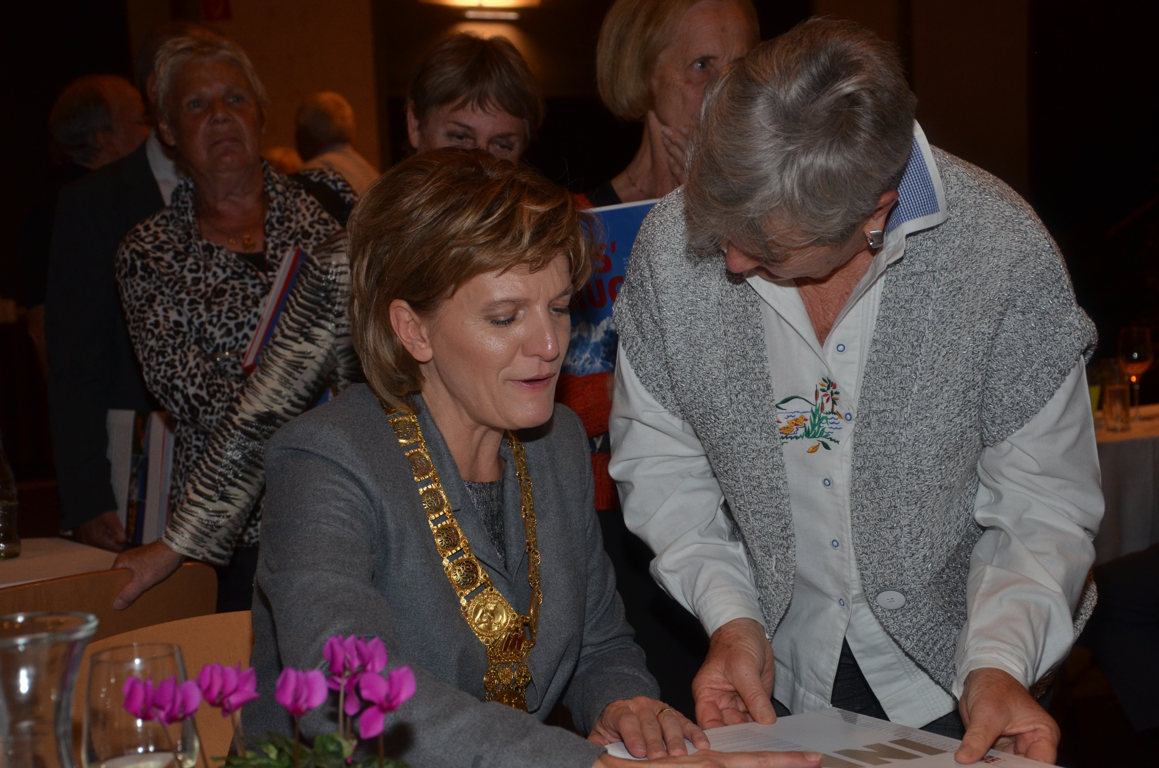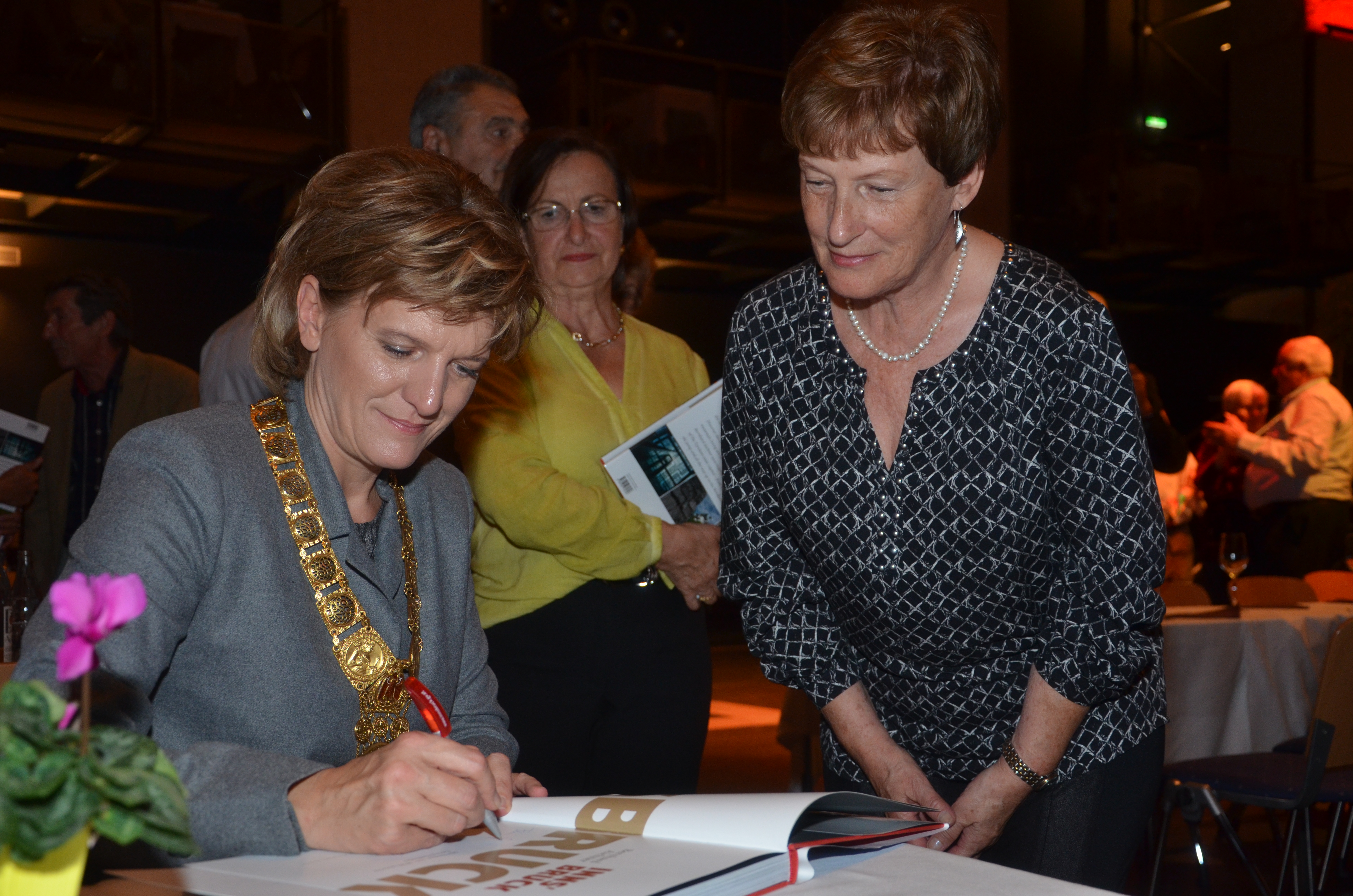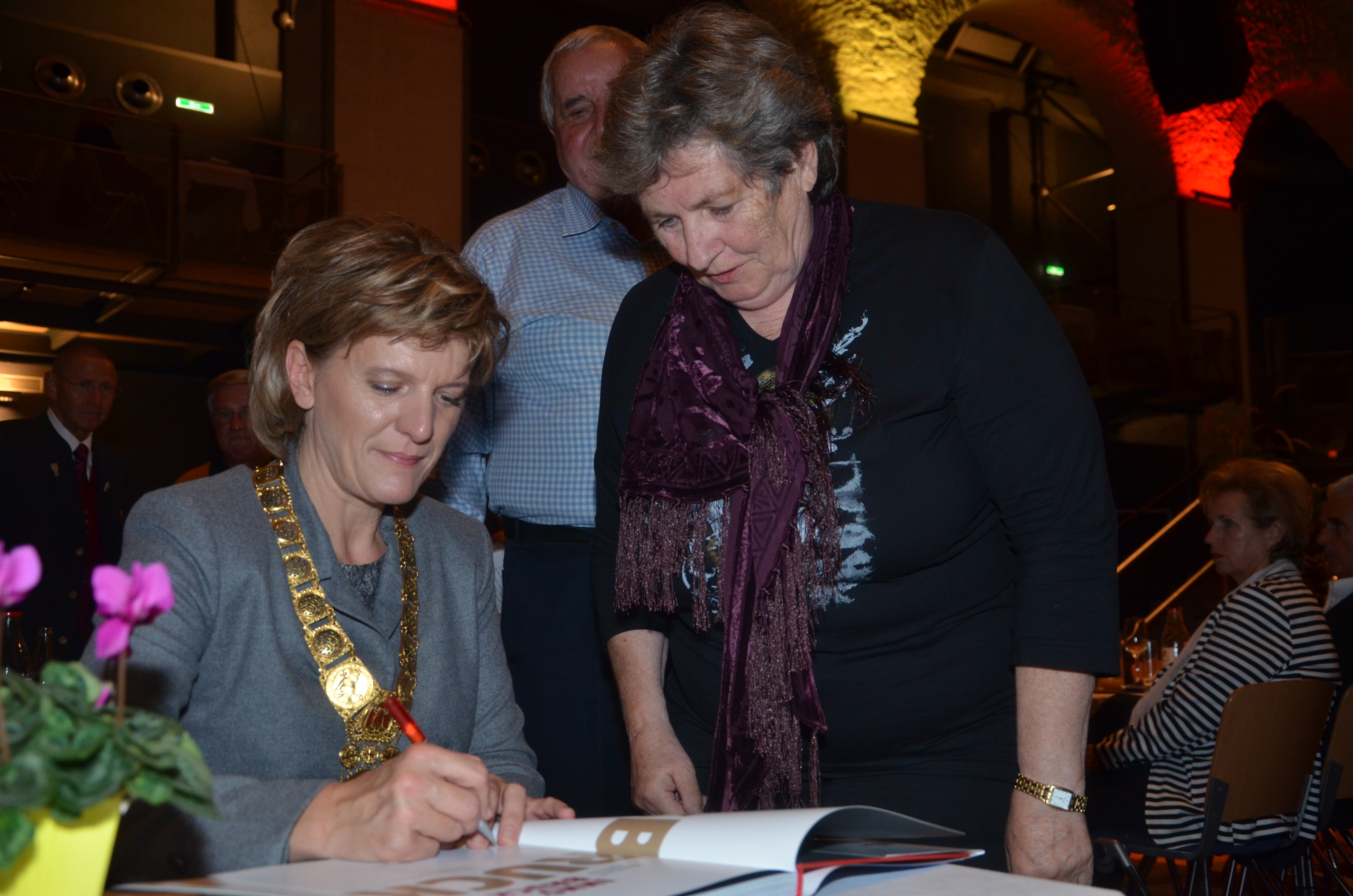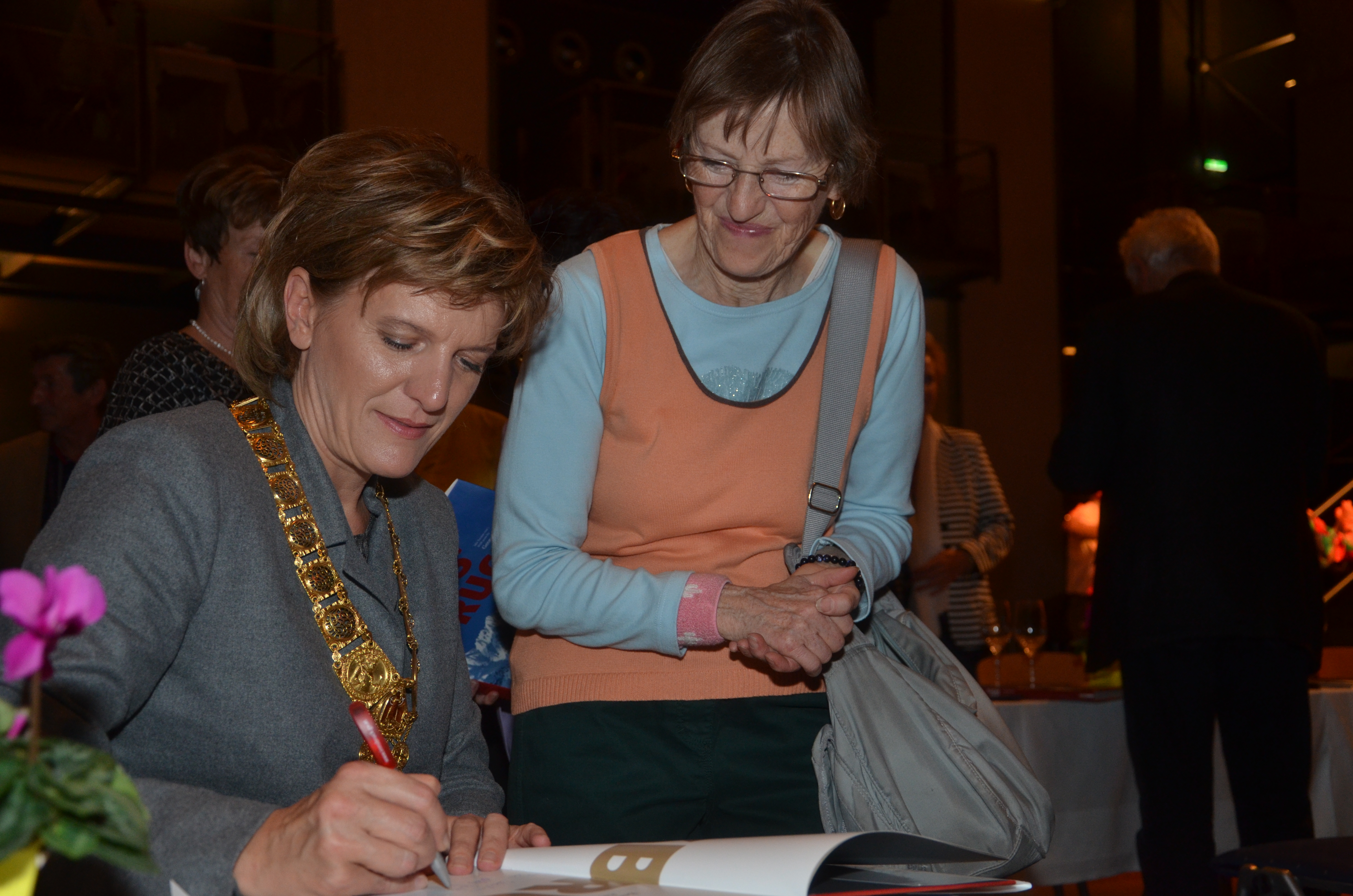 Viele der anwesenden "Geburtstagskinder" holten sich noch eine Unterschrift von Bürgermeisterin Christine Oppitz-Plörer, die gerne jeden Singier-Wunsch erfüllte.