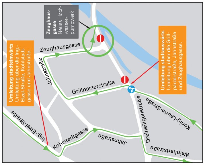 Ab Anfang Oktober 2012 wird in der Zeughausgasse an der Errichtung des Hochwasserpumpwerkes gearbeitet.