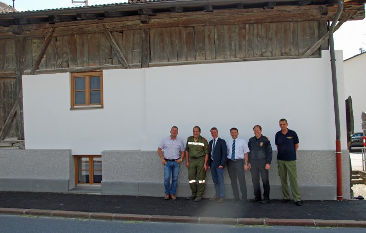 Wie neu erstrahlt die Fassade der Feuerwache der Freiwilligen Feuerwehr Vill an der Viller Dorfstraße. Von April bis Mai wurde diese saniert und ausgebessert. Vizebürgermeister Christoph Kaufmann, Bezirkskommandant-Stellvertreter Albert Pfeifhofer, Branddirektor Mag. Erwin Reichel und Dr. Franz Danler, Geschäftsführer der Innsbrucker Immobilien Gesellschaft (IIG), überzeugten sich am 10. Juni vor Ort vom Resultat. Kommandant Oberbrandinspektor Franz Rofner (Freiwillige Feuerwehr Vill) und Bauleiter Klaus Nagl (IIG) präsentierten die neue Fassade.