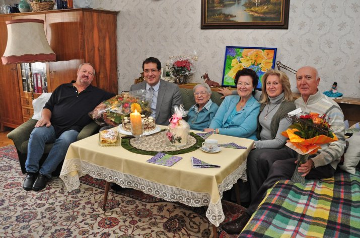 Gut gelaunt empfing Maria Olga Schnaller-Pluch am 15. Dezember alle Gäste, die zum ihrem 100. Geburtstag gekommen waren. Unter den Gratulanten befand sich auch Sozialreferent Vizebürgermeister Franz X. Gruber. Er überbrachte dem Geburtstagskind einen weihnachtlichen Blumenstrauß und die besten Wünsche der Stadt Innsbruck.