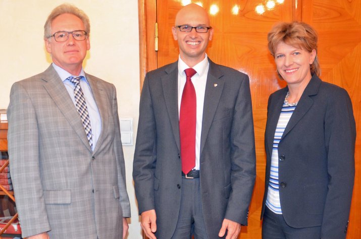 Anlässlich des Beitritts Innsbrucks zum Fachverband der leitenden Gemeindebediensteten Tirols (FLGT) war Landesobmann Mag. Bernhard Scharmer am 24. August zu Gast im Rathaus. Empfangen wurde er von Bürgermeisterin Mag.a Christine Oppitz-Plörer und Magistratsdirektor Dr. Bernhard Holas, die sich auf eine gute Zusammenarbeit freuen.