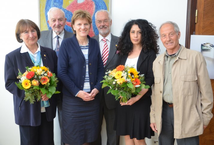 Bürgermeisterin Mag.a Christine Oppitz-Plörer begrüßte am 26. April Wilgard Moser, Dr. Otto Kaspar, Turgut Ozan Keskin (Vertretung Derya Kurtoglu), Johann Kautzy und Christian Waibl im Rathaus. Anlass war die nachträgliche Verleihung der Tiroler Ehrenamtsnadel. Mit dieser Ehrung soll die Vorbildwirkung der „Ehrenamtlichen" hervorgehoben werden.