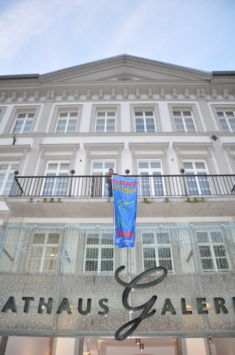 Eine Fahne am Rathausbalkon als sichtbares Zeichen.