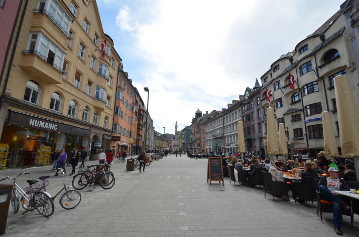 Um ein reibungsloses Nebeneinander von FußgängerInnen und RadfahrerInnen zu ermöglichen, gilt beispielsweise im Bereich der nördlichen Maria-Theresien-Straße für FahrradfahrerInnen Schritttempo. Außerdem gibt es speziell vorgesehene „Fahrgassen