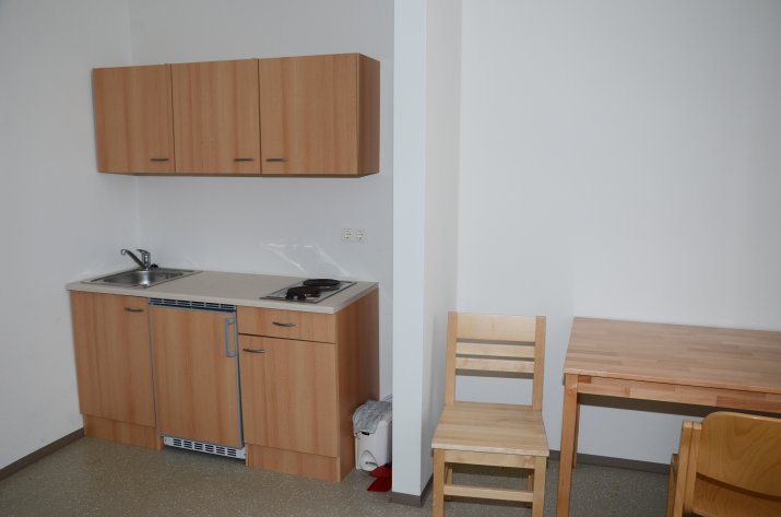 „Ein großes Problem war, dass die WCs und Duschen vorher am Gang waren. Das sorgte für viel Konfliktpotenzial“, erklärte IIG-Geschäftsführer Danler bei der Besichtigung: „Nun wurden aus vier Zimmern zwei und jedes ist mit einer eigenen Nasszelle und Küche ausgestattet.“