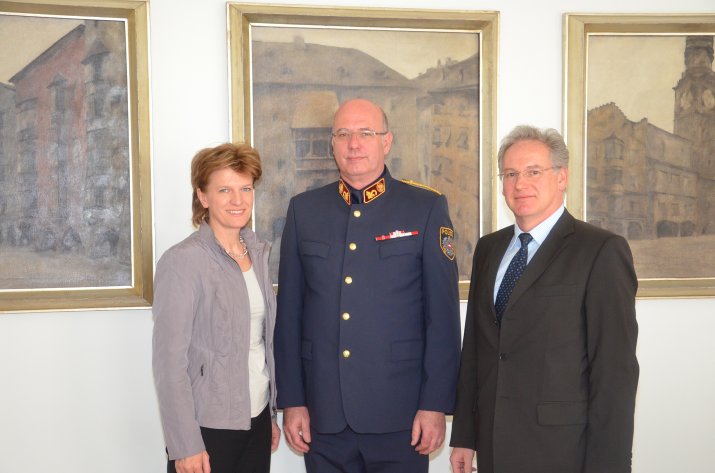 Seit 1. April hat die Bundespolizeidirektion Innsbruck einen neuen geschäftsführenden Polizeidirektor. Am 10. April stattete Dr. Gerhard Ditz Bürgermeisterin Mag.a Christine Oppitz-Plörer im Beisein von Magistratsdirektor Dr. Bernhard Holas einen Besuch im Rathaus ab.