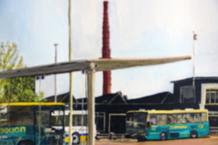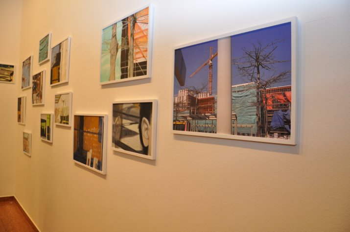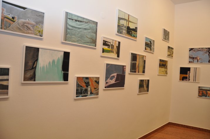 Ausgangspunkt der Ausstellung „heller Tag“ ist eine Bus- und Zughaltestelle in Holland. Dort wartend, fotografierte die Künstlerin an einem lichten Frühlingstag die Szenerie und entwickelte daraus eine Bilderserie. Es entstanden Bildvariationen aus Zooms, Ausschnitten, fotografiert, gemalt, wieder fotografiert, übermalt. Aus den einzelnen Bildern bildet sich ein großes wachsendes variables Bild, das sich stetig verändern kann.