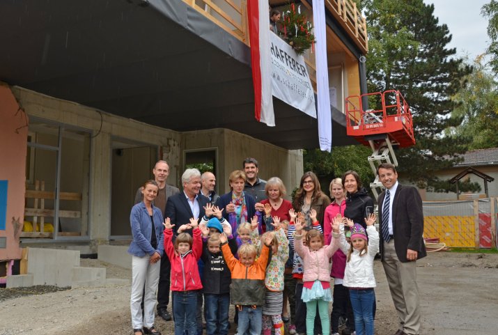 Die Stadt Innsbruck baut insbesondere im Bereich der städtischen Kindergärten und Schülerhorte das Angebot laufend familienfreundlich aus. Der Kindergarten Innerkoflerstraße ist einer der 27 städtischen Kindergärten. Um auch hier den stetig steigenden Bedarf an Betreuungsplätzen abdecken zu können, wird die bestehende Betreuungsstätte vergrößert. Der Kindergarten wird um zwei Kindergartengruppen – von vier auf sechs Gruppen – erweitert. Im Frühsommer erfolgte der Baustart, am 26. September wurde nun, nachdem der Rohbau fertiggestellt wurde, die Firstfeier begangen.