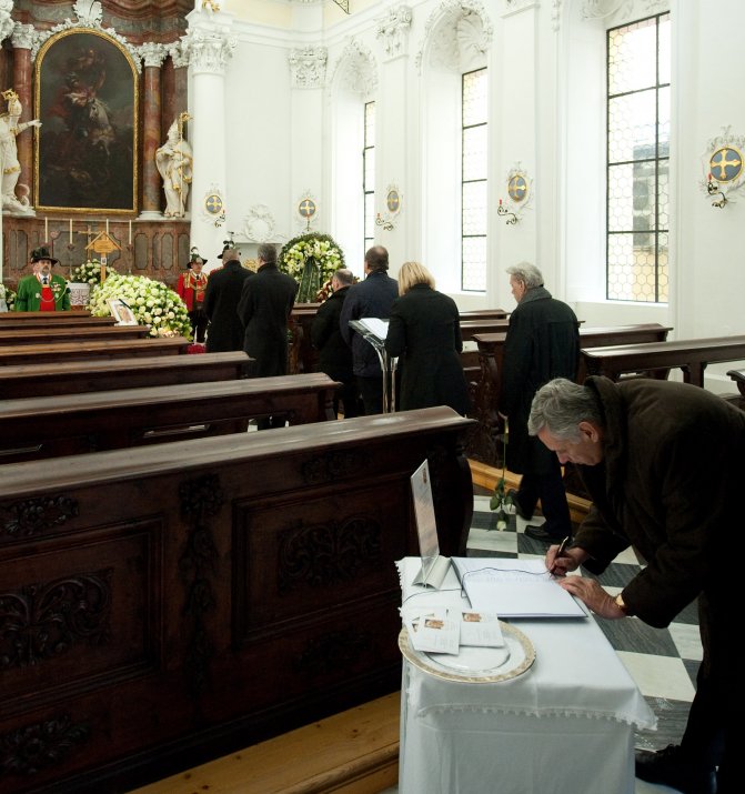Im Anschluss an die Trauersitzung begab sich die Trauerversammlung in die St.-Georgs-Kapelle im Alten Landhaus, wo die Verstorbene derzeit aufgebahrt ist, um gemeinsam mit den Mitgliedern der Tiroler Landesregierung von Hilde Zach Abschied zu nehmen und sich in das Kondolenzbuch einzutragen.