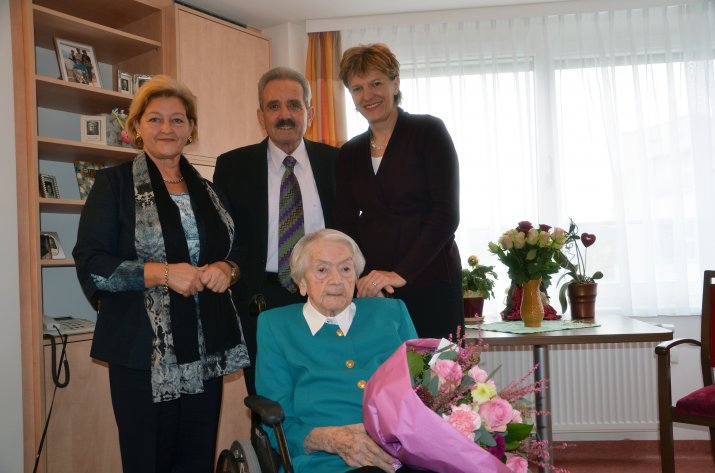 „Ich freue mich, dass es Ihnen gesundheitlich so gut geht und es Ihnen auch hier im Seniorenheim gefällt. Als zweitälteste Innsbruckerin sehen Sie von Jahr zu Jahr besser aus“, gratulierte Bürgermeisterin Oppitz-Plörer der Seniorin, die noch mit 103 Jahren in ihrer eigenen Wohnung wohnte – seit September 2010 lebt sie im Wohnheim Hötting.