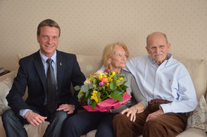 Am 25. Jänner überbrachte Vizebürgermeister Christoph Kaufmann dem Ehepaar Elma und Herbert Paul Glückwünsche in Vertretung von Bürgermeisterin Mag.a Christine Oppitz-Plörer sowie eine Flasche Wein und einen Blumengruß.