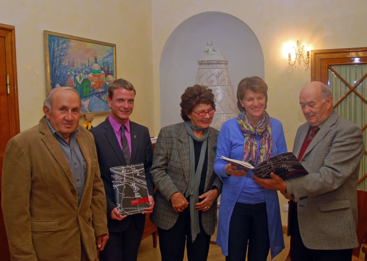 „Es freut mich, dass Sie mich heute besuchen“, so Bgm. Oppitz-Plörer, die die Gäste gemeinsam mit Vizebgm. Christoph Kaufmann in ihrem Büro empfing. „Die Aufarbeitung ist sehr wichtig und hier gibt es noch genug zu tun, um ein Vergessen oder ein Verdrängen der Erinnerung zu verhindern.“