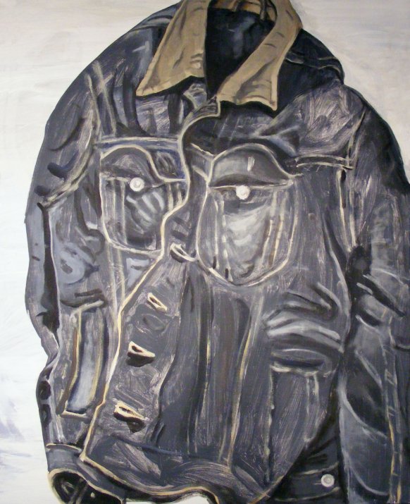 Hubert Flattinger malt „Porträts“ von Kleidungsstücken. „Vielleicht um herauszufinden, ob sich etwas vom Stoff, von der Haut, von der Seelen jener, die diese Sachen für gewöhnlich hautnah an ihrem Körper tragen, auf das Gewebe überträgt“, so der Künstler. Schuhe – heißt es ja – nehmen das Gesicht ihrer Besitzer an, erzählen Geschichten. Solcherlei Geschichten will auch Hubert Flattinger mit seinen Bildern nachspüren, die er nach den Besitzern der jeweiligen Kleidungsstücke benennt. Es sind Bilder-Geschichten von langen Zugfahrten mit schneevereisten Fenstern, Faltentälern, dunklen Mantelschluchten, Bettgeflüstereien, Cowboyliedern und einsamen Fernsehabenden, verschütteten Aschenbechern und völlig überspannten Hosenträgern. Seine Bilder spiegeln auch Lieder wider.