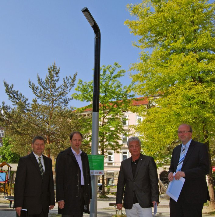 Der Einsatz von umweltfreundlichen und erneuerbaren Energien ist besonders in Städten von immer größerer Bedeutung. Um das Bewusstsein von Innsbrucks BürgerInnen für Energieeffizienz zu schärfen, hat die Stadt Innsbruck gemeinsam mit dem Energiehauspark und den Innsbrucker Kommunalbetrieben am Adolf-Pichler-Platz eine LED-Solarleuchte installiert. Umwelt- und Verkehrsstadtrat Ernst Pechlaner, IKB-Vorstand DI Helmuth Müller, Energiehauspark-Geschäftsführer Ing. Manfred Abenthung und AMProducts-Verkaufsleiter Edwin Schöpf informierten am 5. Mai über das Projekt.