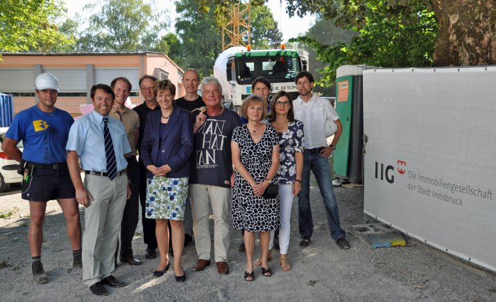 Im Innenhof des BG/BRG Adolf-Pichler-Platz ließen sich die Bürgermeisterin und der IIG-Geschäftsführer die Bauarbeiten für die Gebäudeerweiterung erklären und zeigen. Anwesend waren dabei nicht nur Architekt Dipl. Ing. Axel Birnbaum und Projektleiter Dipl. Ing. Richard Heiser sowie Projektbeteiligte, sondern auch Direktorin Prof. Evelin Müller-Bürgel und Landesschulratsdirektor HR Dr. Reinhold Raffler.