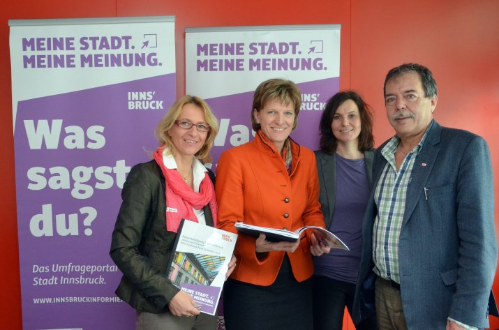 Bürgermeisterin Mag.a Christine Oppitz-Plörer, Integrationsstadtrat Mag. Gerhard Fritz, MMag.a Barbara Traweger-Ravanelli (IMAD-Meinungsforschung), Mag.a Nicola Köfler (Integrationsbeauftragte der Stadt Innsbruck) und Reg.-Rat Wolfgang Steinbauer (Amtsvorstand Bürgerservice und Öffentlichkeitsarbeit) informierten im Rahmen eines Pressegespräches am 29. Jänner über die Ergebnisse.