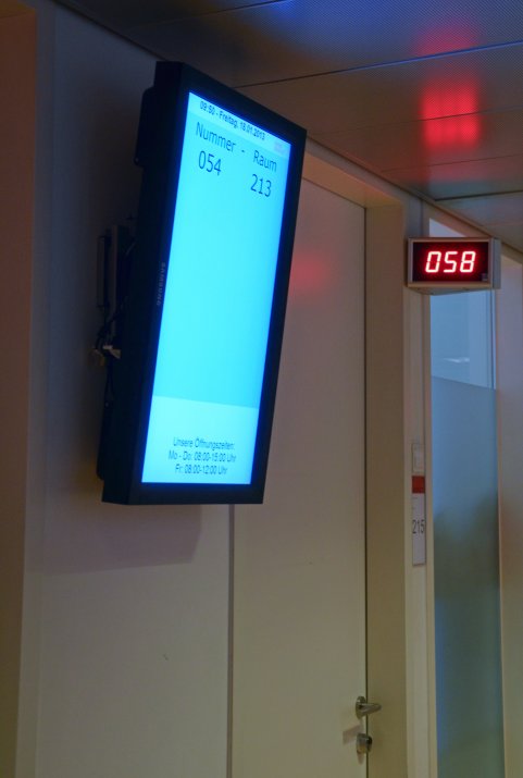 Im Sinne einer bürgerfreundlichen Stadt wartet das Pass- und Meldewesen des Magistrats mit einer neuen, modernen Aufrufanlage auf: Ein 40“ Monitor am Stiegenaufgang fungiert als Wegweiser im Eingangsbereich und informiert über die aktuellen Wartezeiten. Im Wartebereich wurden zwei zimmerweisenden 32“ Monitore angebracht. Bei den aufrufenden Schaltern wurden zwölf signalgebende Anzeigen installiert.