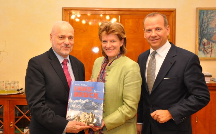 Die Bürgermeisterin der Landeshauptstadt Tirol freute sich über den Besuch des norwegischen Botschafters. Die Hauptthemen des Gesprächs waren wirtschaftliche, touristische und kulturelle. Vor allem aber unterhielten sie sich über politische Themen, was auch auf das große Interesse von Jan Petersen zurückzuführen war. Das Stadtoberhaupt von Innsbruck übergab dem norwegischen Botschafter einen Bildband von Innsbruck und sprach eine Einladung zu den Festwochen der Alten Musik aus. „Ich würde mich freuen, Sie zu einem unserer kulturellen Höhepunkte im August wieder begrüßen zu dürfen“, so die Bürgermeisterin.