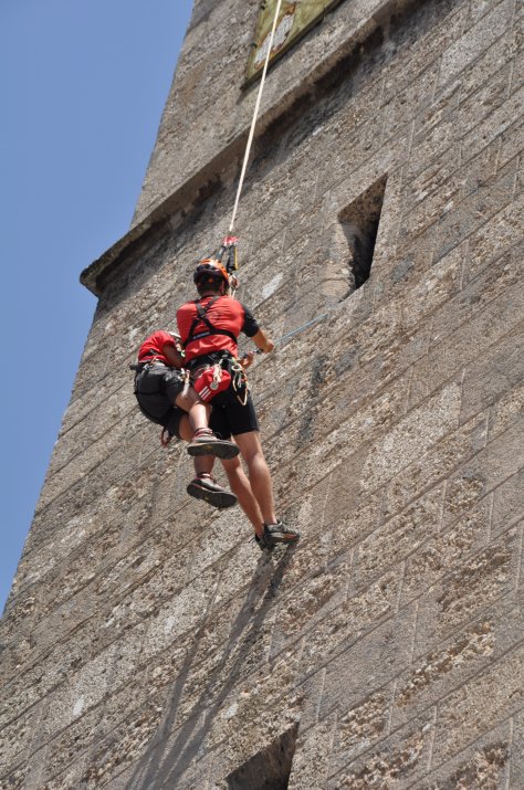 (RMS) Einmal selber Feuerwehrmann sein und Feuer löschen, einen Blick ins Rettungsauto werfen, sich von Polizisten Tipps holen oder von der Bergrettung gesichert einen Kletterturm erklimmen: Das „Peterle hilft“-Sicherheitsfest rund um den Stadtturm am 29. Juni war Anziehungspunkt für zahlreiche Kinder.