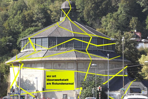 Für die Ideenwerkstätten wird ein temporäres Büro entweder direkt in der Rotunde oder in einem Veranstaltungsraum in der Umgebung eingerichtet. Gemeinsam mit der Bevölkerung werden Ideen und Lösungsansätze ausführlich erarbeitet und diskutiert.