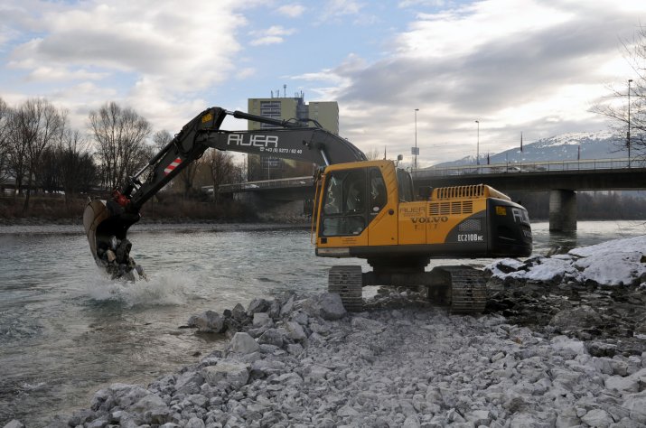 Im Rahmen des Hochwasserschutzprojektes an Sill und Inn kommen die Arbeiten im Bauabschnitt 3 plangemäß voran. Aktuell stehen die Arbeiten am Altarm der Sill im Vordergrund, die im April 2011 abgeschlossen sein werden.