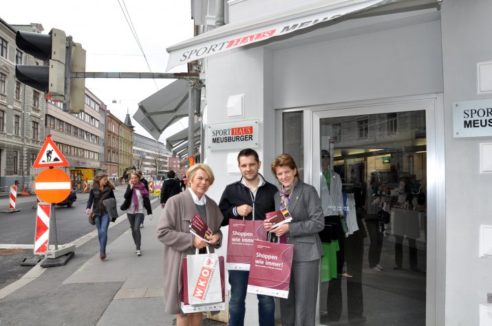 Trotz Baustellen „shoppen wie immer“ – dieses Motto hat die Stadt Innsbruck gemeinsam mit dem Stadtmarketing und der Wirtschaftskammer Tirol für die Innsbrucker Innenstadt ausgegeben. In einer gemeinsamen Aktion werden die Innenstadt-Kaufleute um Verständnis für die umfangreichen Bauarbeiten, insbesondere im Zuge der Verlängerung der Linie 3 gebeten.