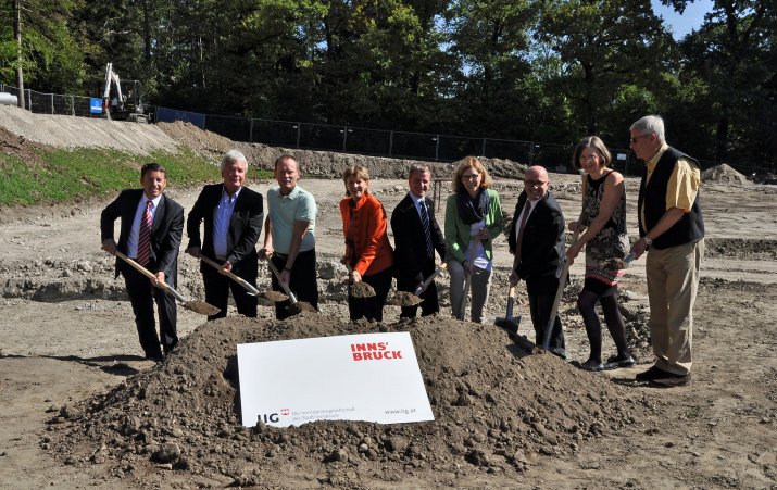 Seit Jahren gibt es Bemühungen im Stadtteil Kranebitten einen Kindergarten anzusiedeln. Aufgrund der zu erwartenden Bevölkerungszunahme sowie geplanten Wohnbauvorhaben wurden die Pläne für einen zweigruppigen städtischen Kindergarten im westlichen Innsbrucker Stadtteil schließlich konkret. Am 29. September begingen Bürgermeisterin Mag.a Christine Oppitz-Plörer, Vizebürgermeister Christoph Kaufmann, Stadtrat Ernst Pechlaner, Amtsvorständin Dr.in Martina Zabernig, Dr. Franz Danler (Geschäftsführer Innsbrucker Immobilien Gesellschaft) sowie weitere VertreterInnen der Stadt Innsbruck und der IIG feierlich den Spatenstich. Die Pläne des Architekten DI Helmut Reitter werden bis Sommer/Herbst 2015 umgesetzt.