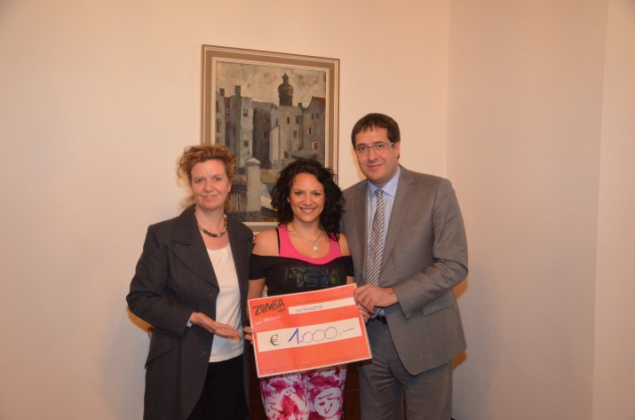 Dass die neue Trendsportart Zumba nicht nur fit hält und für gute Stimmung sorgt, hat das Team um Melanie Ritsch (Zumba Tirol) vor kurzem bewiesen. Mit den Einnahmen des von ihr durchgeführten Tanz-Aerobic-Kurses und Spenden der KursteilnehmerInnen konnten in den letzten Wochen 1000 Euro für eine Innsbrucker Familie, die sich derzeit in einer Notlage befindet, gesammelt werden.