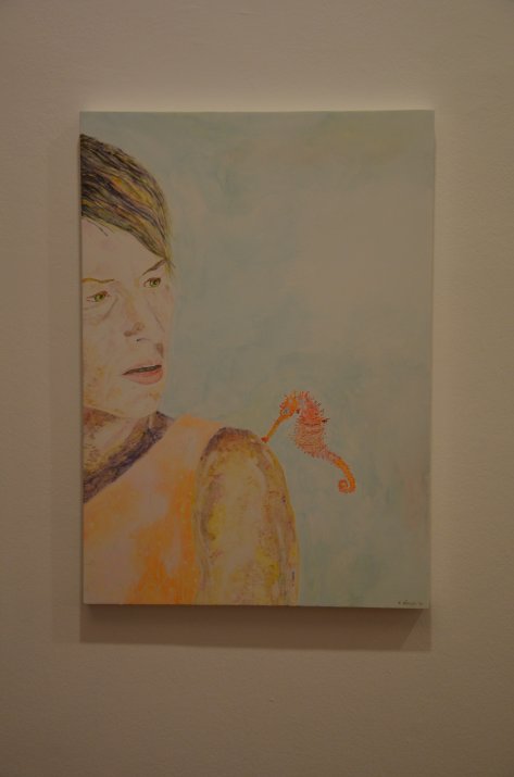 In der Ausstellung zeigt die akademische Künstlerin großformatige, figurative Eitempera bzw. Ölbilder, die trotz unterschiedlich starker Farbgebung wie zarte Aquarelle wirken. Charlotte Simon ließ sich zu ihren Kunstwerken von ihrer zweiten Leidenschaft, dem Schauspiel, inspirieren. Sobald SchauspielerInnen in eine andere Rolle schlüpfen, verwandeln sie sich, bleiben aber dennoch sie selbst. Dieses Thema hat die Künstlerin in ihren Bildern wieder aufgegriffen und so wandeln sich die Figuren wie selbstverständlich vom Tier zum Menschen oder vom Mensch zum Tier. Der Zauber des Augenblicks der Wandlung steht im Mittelpunkt des malerischen Interesses.