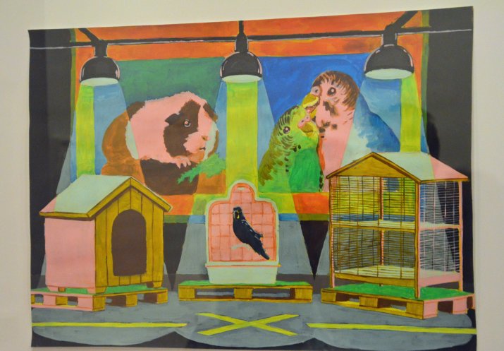 In der Galerie im Andechshof findet eine Zusammenführung dieser Fragmente statt: Gezeigt werden einerseits Illustrationen, die aufgrund ihrer intensiven Kolorierung übertrieben und künstlich wirken und als überspitzte Darstellung von real Vorgefundenem gelesen werden können. Andererseits verweisen Fotos auf die konstruierte Natur unserer Welt, indem „gefühlte unfreie Räume“ sichtbar gemacht werden. Zu guter letzt wird ein Vogel zum Leben erweckt und aus der Gefangenschaft seines künstlichen (Da-)Seins befreit, denn… „er fliegt doch“.