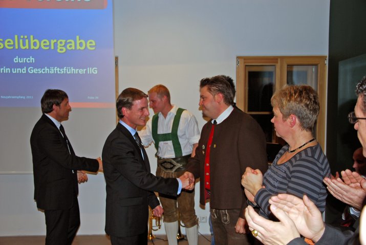 „Im Lauf dieser Woche hat sich vieles verändert, denn wir haben mit Hilde Zach ein politisches wie menschliches Vorbild verloren“, bat Vizebürgermeister Christoph Kaufmann, der als Vertretung für Bürgermeisterin Mag.a Christine Oppitz-Plörer gekommen war, um Verständnis. „Trotzdem freut es mich, beim Neujahrsempfang der Arbeitsgemeinschaft Amras dabei sein zu dürfen. Mir selbst liegt das Vereinswesen in den Stadtteilen sehr am Herzen, da es für das Gemeinschaftsleben und den Zusammenhalt unverzichtbar ist. Ganz besonders freut mich, heute Abend den einzelnen Vereinen, die in dieses neue Gemeinschaftshaus einziehen werden, offiziell die Schlüssel überreichen zu dürfen.“