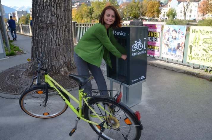 Entworfen und den InnsbruckerInnen zur Verfügung gestellt wurde die erste Rad-Service Station von den IVB (Innsbrucker Verkehrsbetrieben). Sie ist mit verschiedenen Werkzeugen und einer Radpumpe ausgestattet. Die Station funktioniert ohne Stromanschluss, dies macht sie transportfähiger. Auch eine weitere neue und größere Rad-Service Station wird in der Nähe des Sillparks voraussichtlich in etwa zwei Wochen in Betrieb genommen.