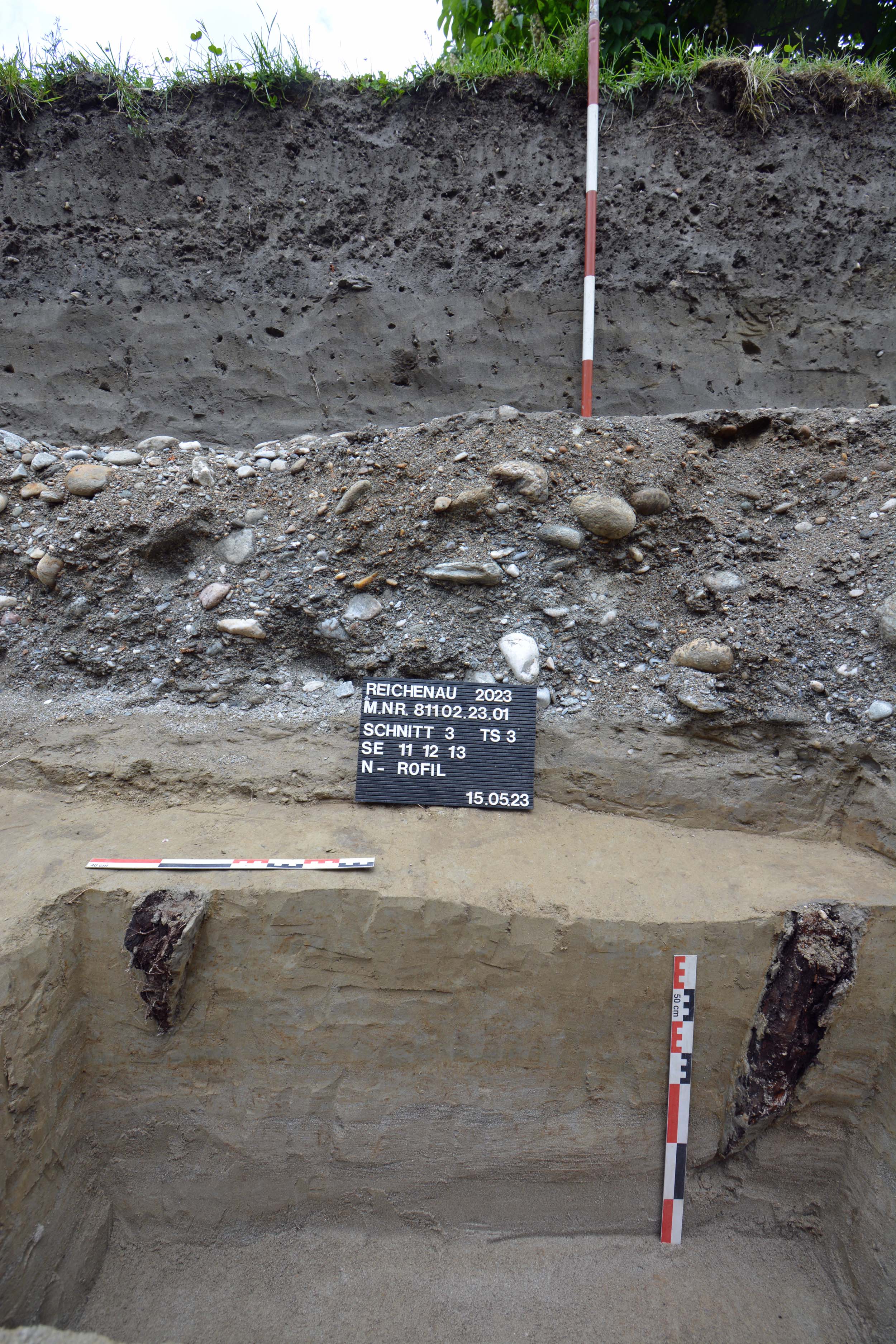 Durch die Auswertung historischer Luftbilder konnten Archäologinnen der Universität Innsbruck und der Firma monumentGUT die räumliche Struktur des Lagerkomplexes Reichenau bzw. der nachkriegszeitlichen Notwohnsiedlung digital rekonstruieren. Darauf aufbauend erfolgte vergangenen Herbst eine Untersuchung mit Bodenradar. Die zweiwöchigen Grabungsarbeiten im Mai dieses Jahres wurden im Auftrag des Stadtarchiv/Stadtmuseum im letzten noch unbebauten Wiesenbereich am südlichen Ende des Recyclinghofes in der Trientlgasse durchgeführt.