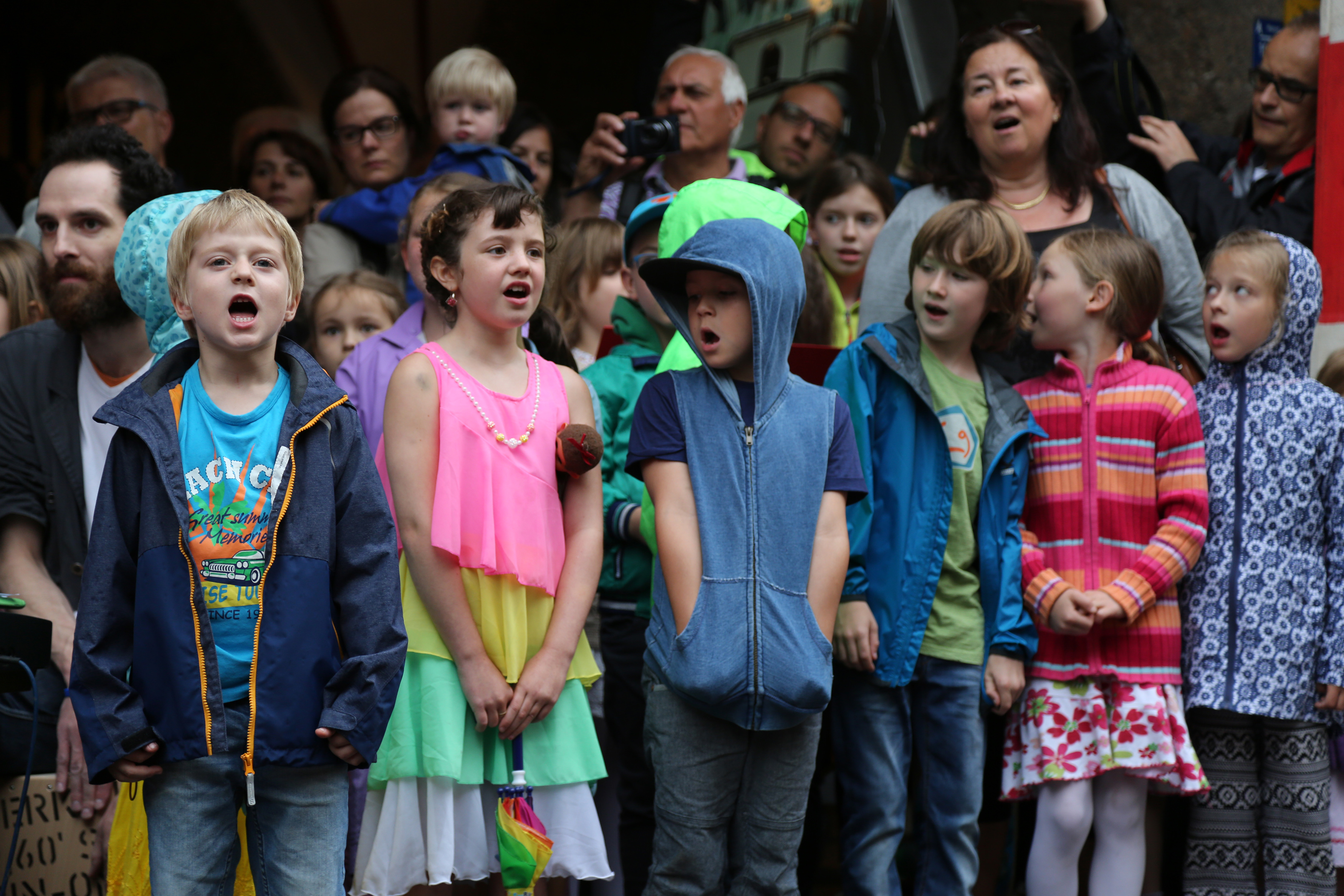 „Innsbruck singt“ startete um 16:00 Uhr vor dem Stadtturm. Dort fand sich die Station „Kinder singen für Jung und Alt und Alt und Jung singen mit“, die von Manfred Mingler (Musikschule Innsbruck) betreut wurde.