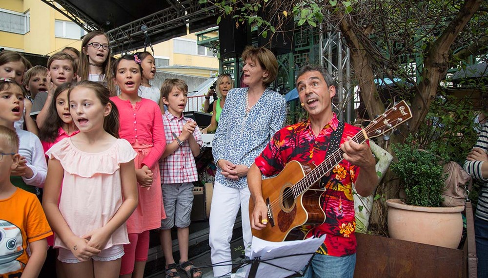 Den Auftakt machen am Samstag, 01. Juli um 15:00 Uhr im Treibhaus-Garten nach der Eröffnung mit Bürgermeisterin Christine Oppitz-Plörer der Kinderchor und die Singklassen der Musikschule Innsbruck (Leitung: Manfred Mingler). Gemeinsam mit dem Tiroler Duo RatzFatz präsentieren sie den Programmpunkt „Kinderlieder zum Mitsingen“.