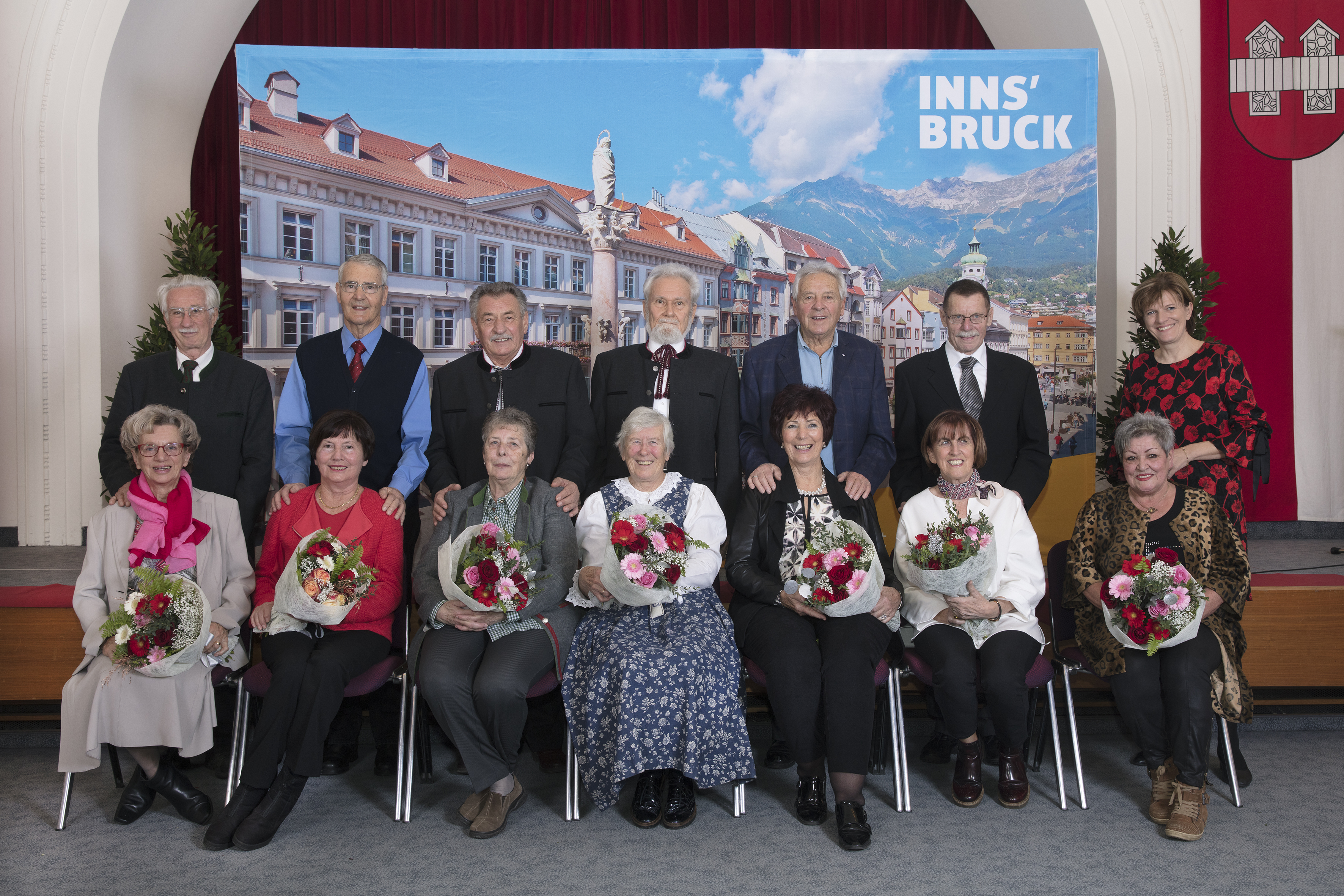 Lange verheiratet zu sein, ist in der Tiroler Landeshauptstadt nicht unüblich: In Innsbruck feierten bzw. feiern noch 2017 insgesamt 238 Goldene und 85 Diamantene Hochzeitspaare ihre Jubiläen. 26 Paare ihre Eiserne Hochzeit (65 Jahre Ehe) und 14 ihre Steinerne Hochzeit (67,5 Jahre). Vier Paare durften ihre Gnadenhochzeit nach 70 Jahren Ehe feierlich begehen. (DH)