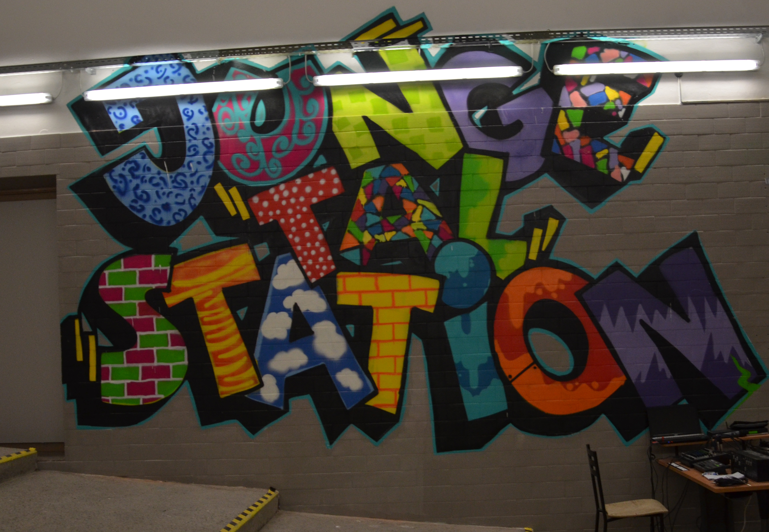 Die kunstvoll bunten Wände gestalteten Jugendliche der VIA Produktionsschule im Rahmen eines Graffiti-Workshops. Auch die neue Bühne im Veranstaltungssaal der Jungen Talstation hat eine interessante Geschichte: Sie wurde von der HTL Bau und Design konstruiert, gebaut und bietet eine angemessene Plattform für zukünftige Veranstaltungen, wie etwa Konzerte und Podiumsdiskussionen.